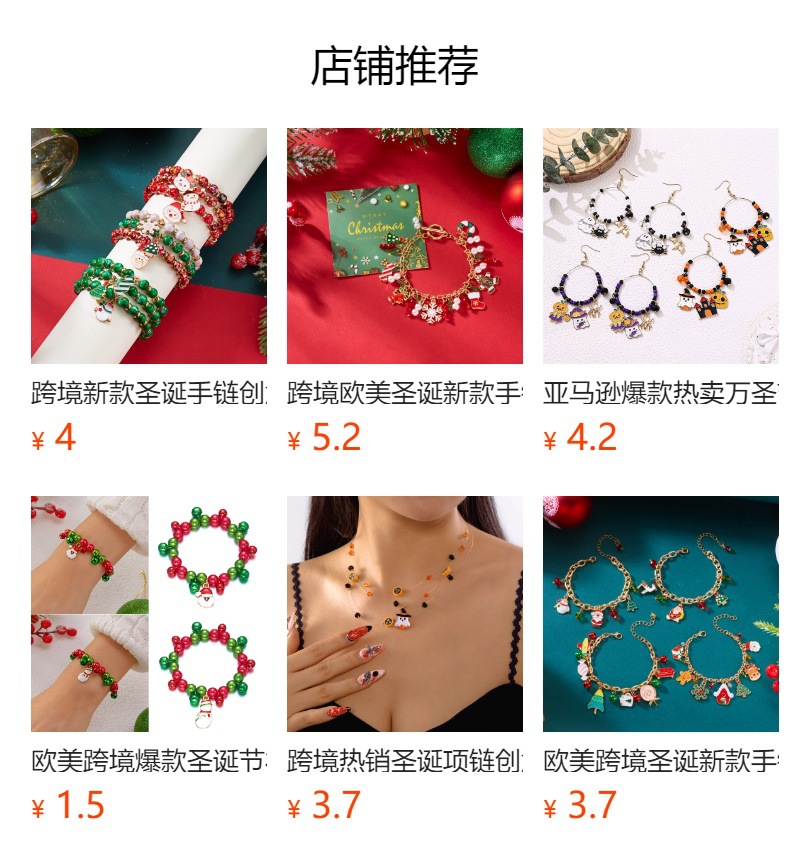 厂家直销圣诞手链 可爱设计感百搭雪花麋鹿拐杖多吊坠礼物手链女
