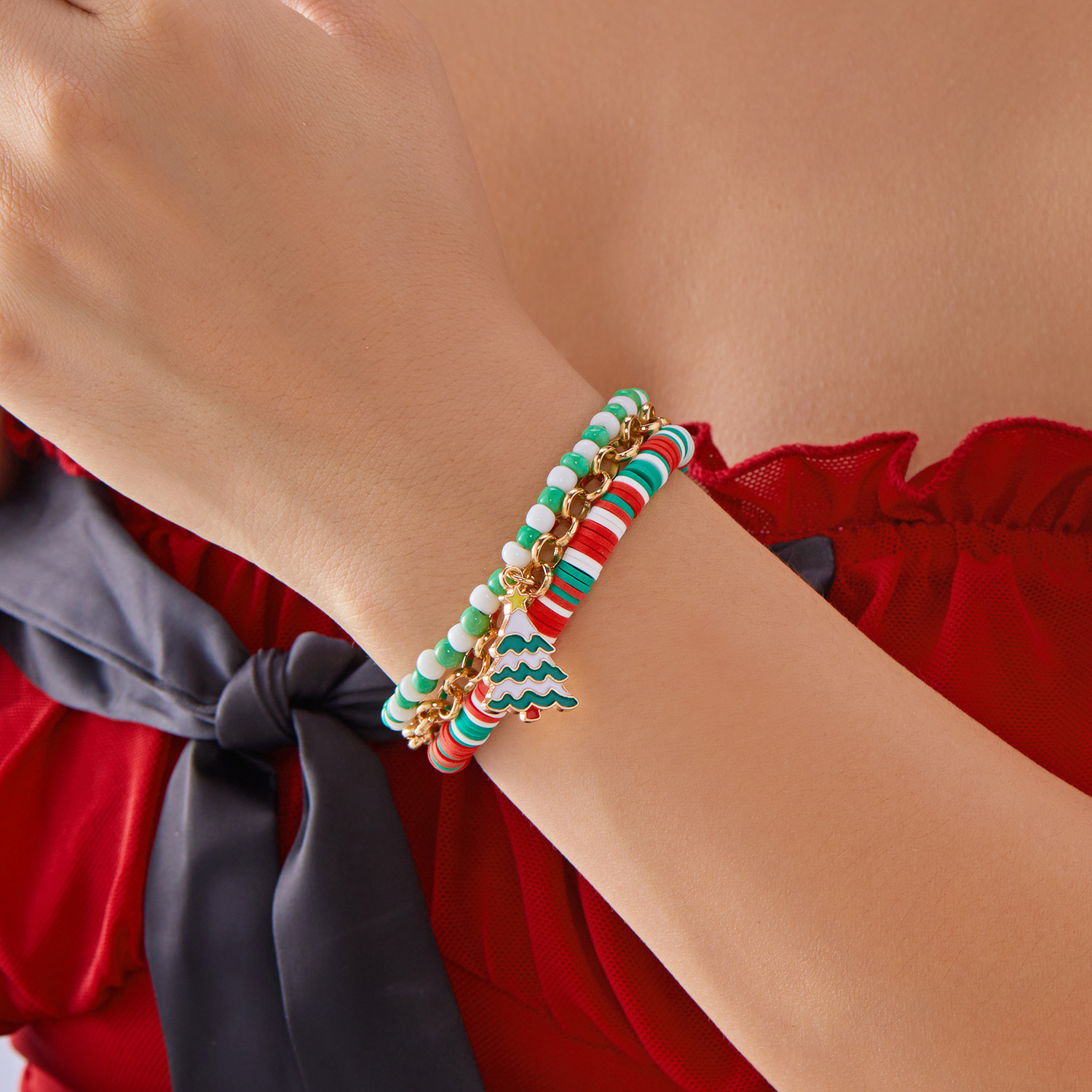 クリスマスクロスボーダー装飾品百合クリスマス要素ペンダントクリスマスカラーソフト陶ビーズクリスマスブレスレット女
