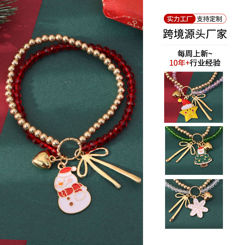 跨境欧美圣诞新款手链 创意百搭圣诞树老人雪花吊坠爆花晶手串女