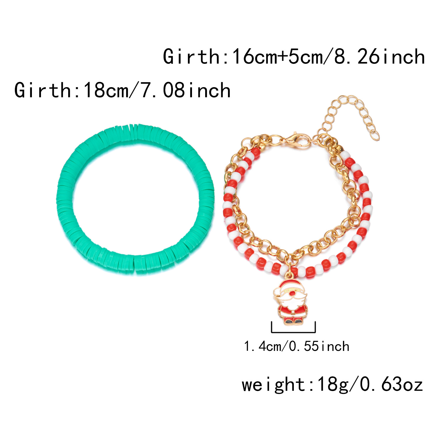 跨境新款2条装圣诞节手链 创意小众软陶圣诞老人雪花串珠弹力手串