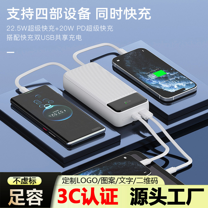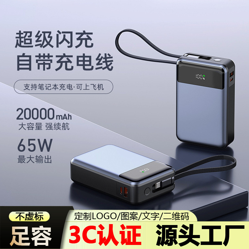 3c 認定 PD65W ケーブル付き大容量フラッシュ高速充電モバイル電源 Huawei 社 Xiaomi ノートブックパワーバンクに適しています