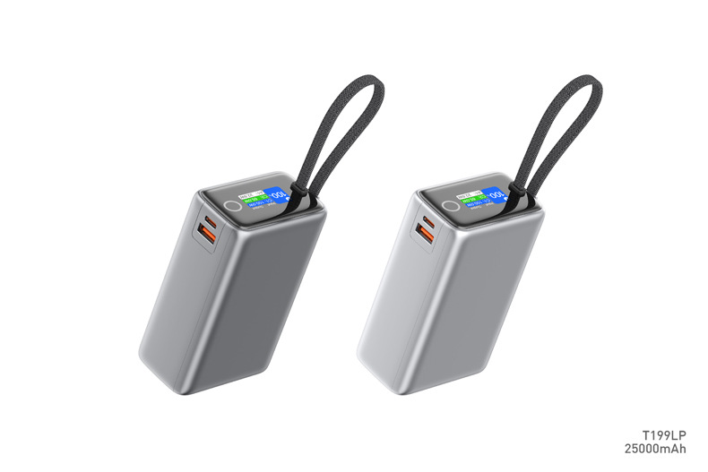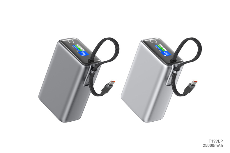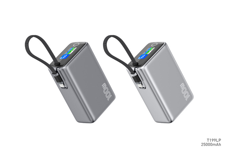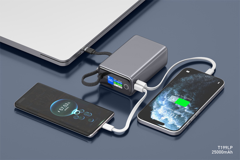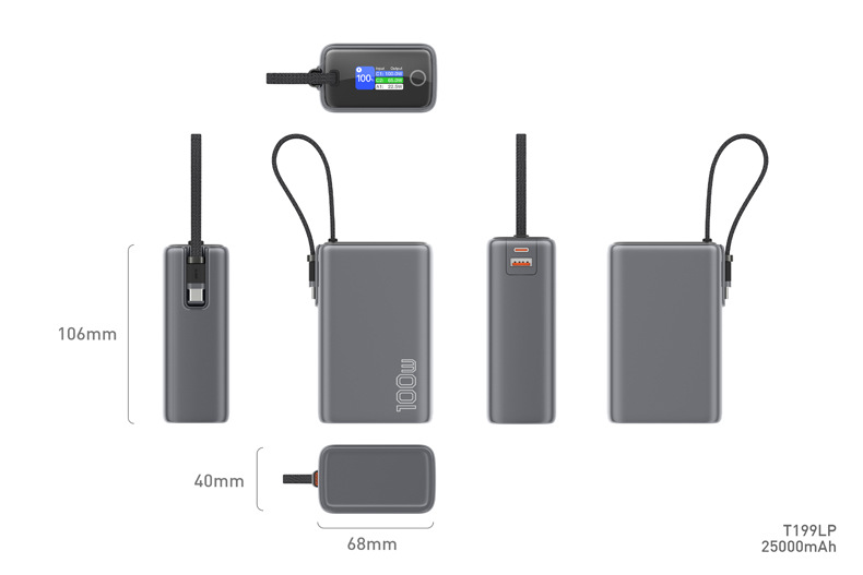 TFT カラー スクリーン ハイパワー PD100w アルミニウム合金ボディ パワーバンク セットには、伸縮式ケーブル パワーバンクの急速充電が付属しています