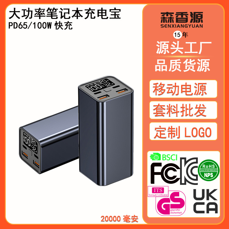 卸売りPD65W急速充電大電力100W充電宝セット20000ミリアンペアアルミニウム合金移動電源セット