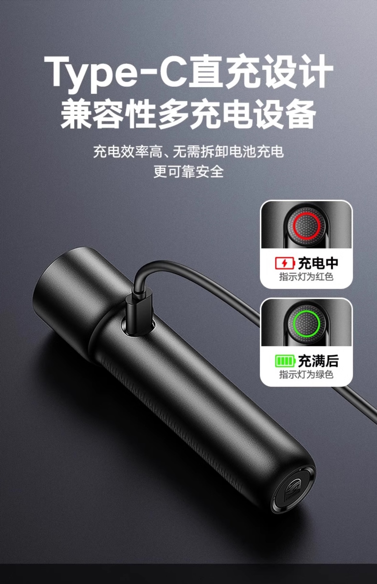 手电筒强光可充电式超亮小型聚光户外家用迷你便携巡逻耐用远
