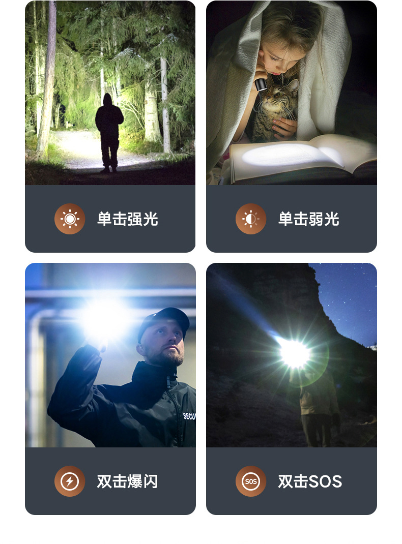 手电筒强光超亮充电超长续航家用户外应急可携式多功能小手