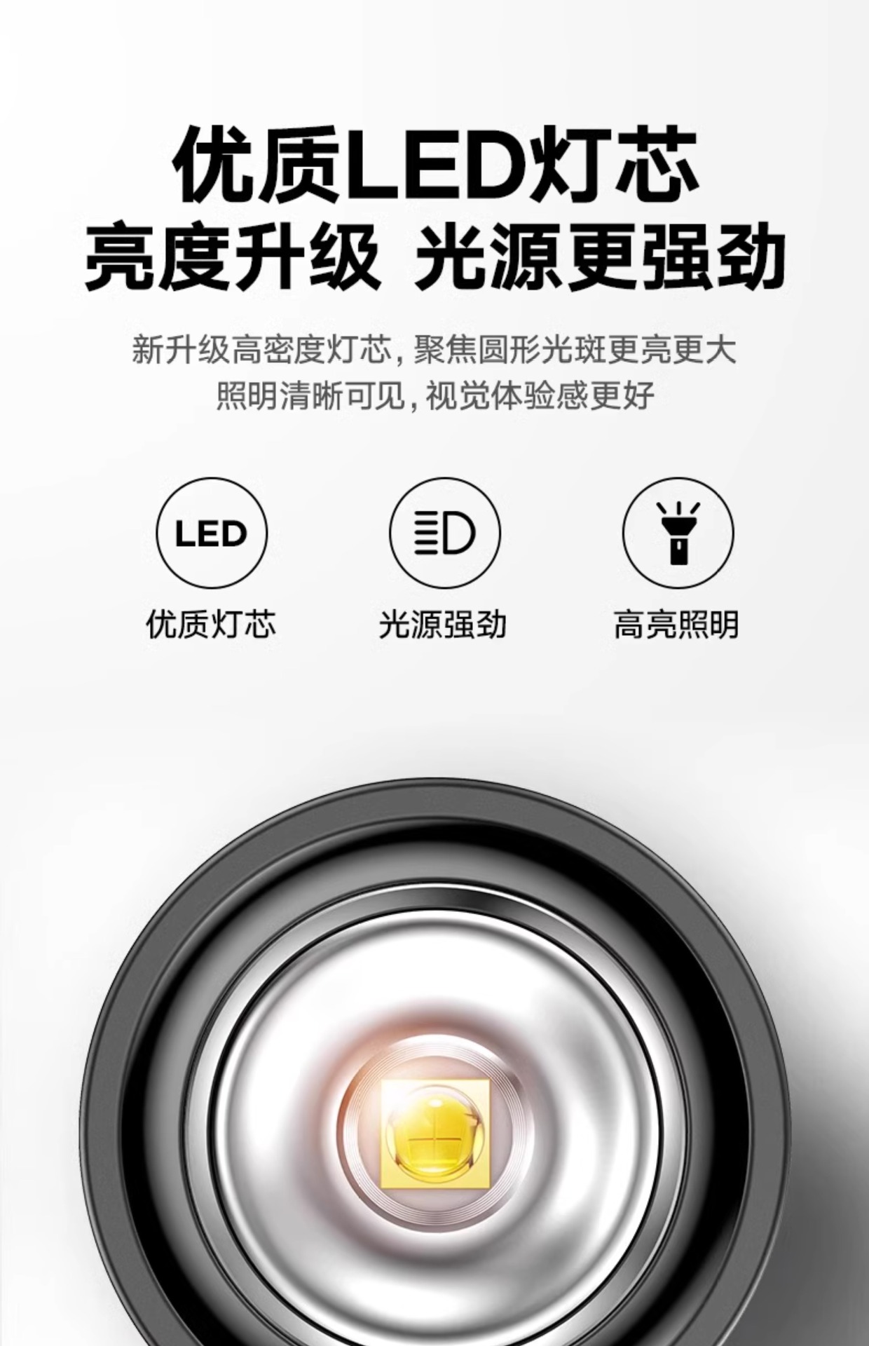 强光手电筒变焦超亮长续航穿天家用小型便携式军户外家专用应急灯