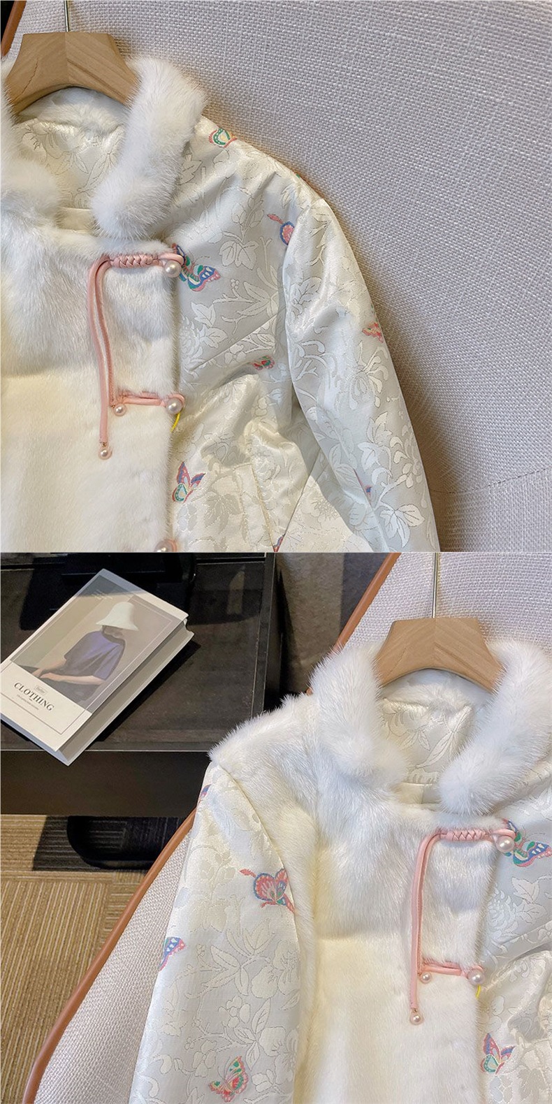 今年の新作中国風コート、人気沸騰中の冬服、高級感のある高級なボタン留めの白い綿入りの民族風アウター(女性用)
