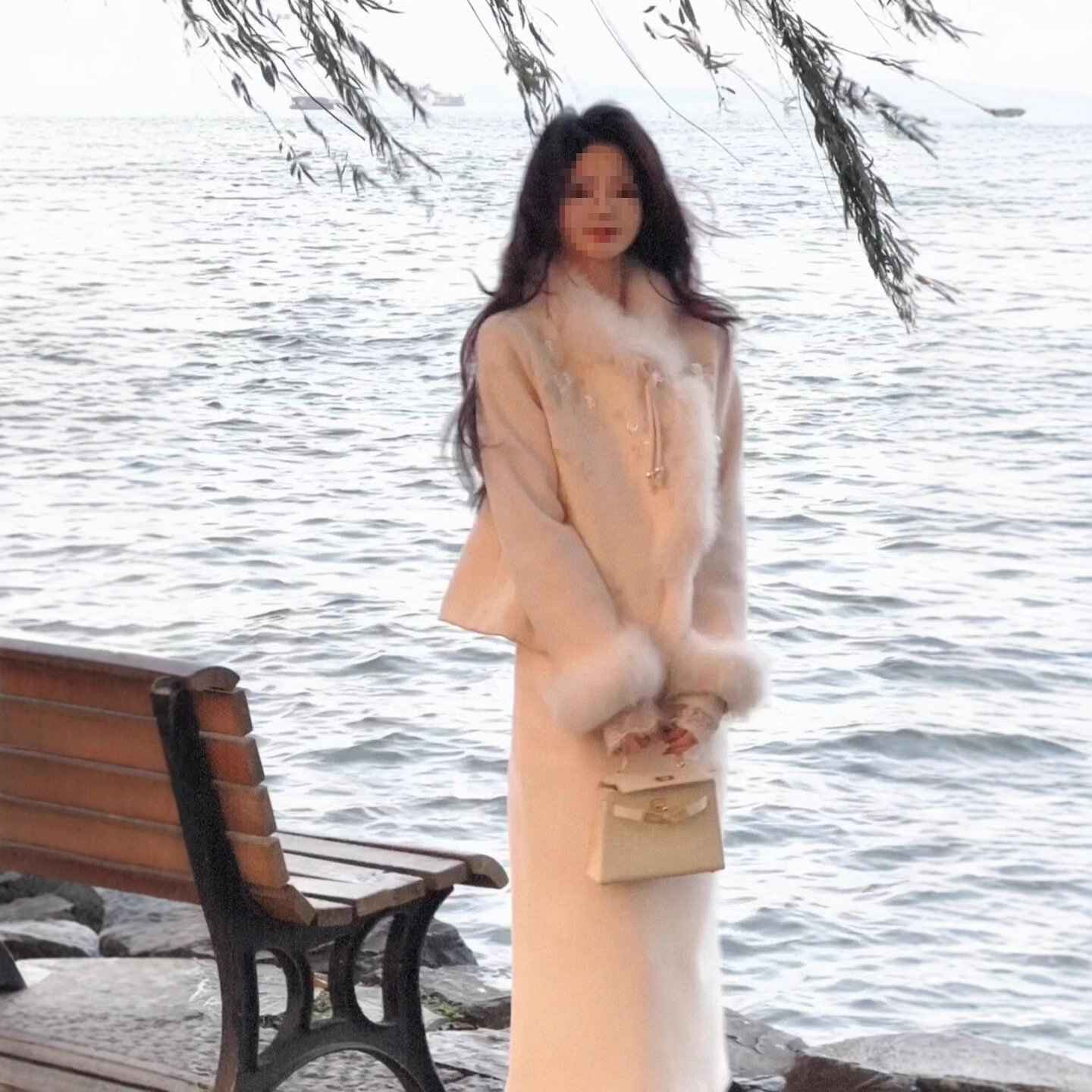 高级国风古韵秋冬毛呢外套呢子半裙气质半身裙套装中式两件套