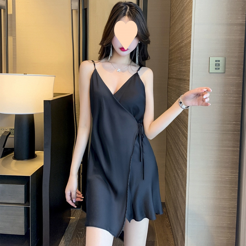ファットセクシーパジャマ女性夏インターネットセレブスタイルアイスシルクワンピースレースアップ和風着物サスペンダーナイトガウン女性プラスサイズ