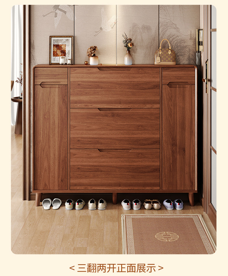 实木胡桃色鞋柜家用门口大容量挂衣架一体储物柜客厅入户门玄关柜