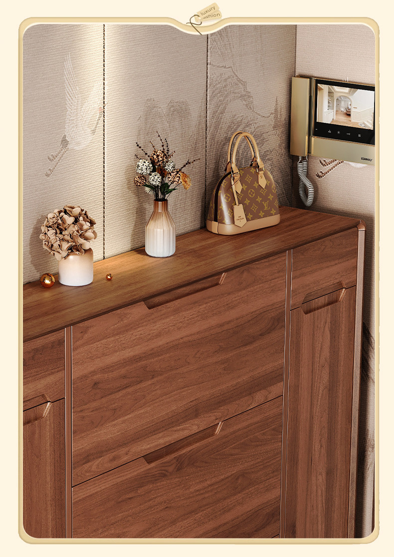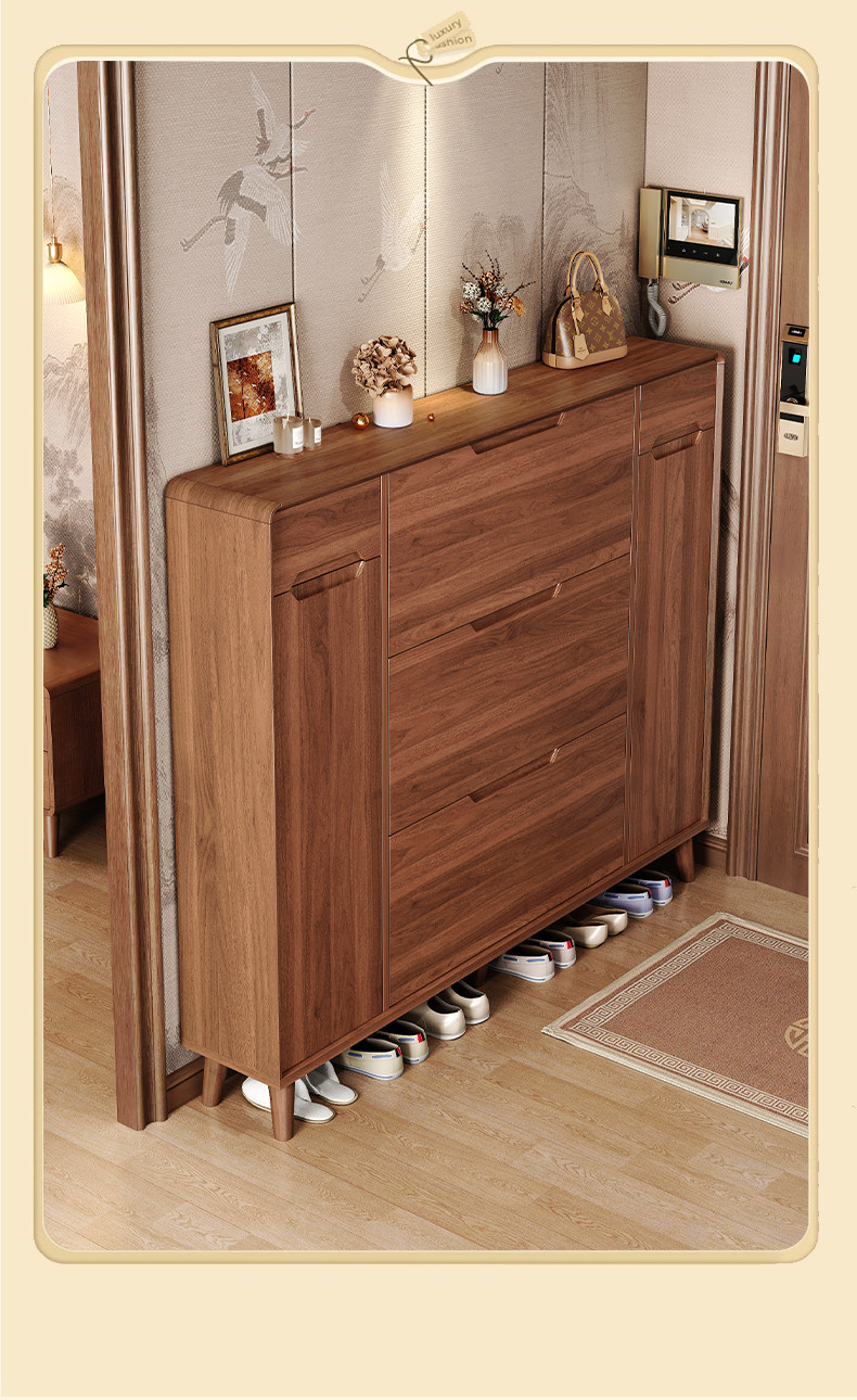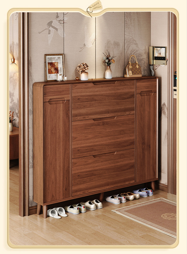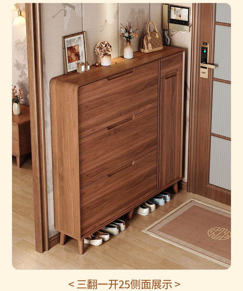 新中式超薄翻斗鞋柜家用门口进门靠墙楼道走廊实木腿一体收纳鞋架