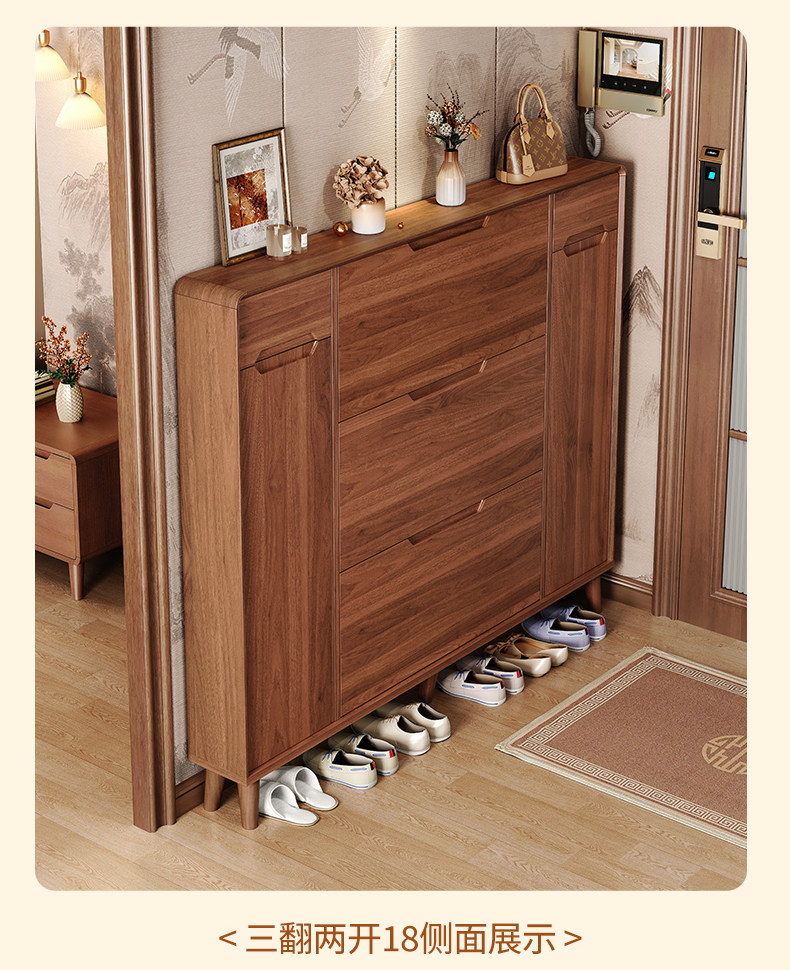 橡木翻斗鞋柜家用现代门口极窄18cm储物柜大容量入户玄关收纳鞋架