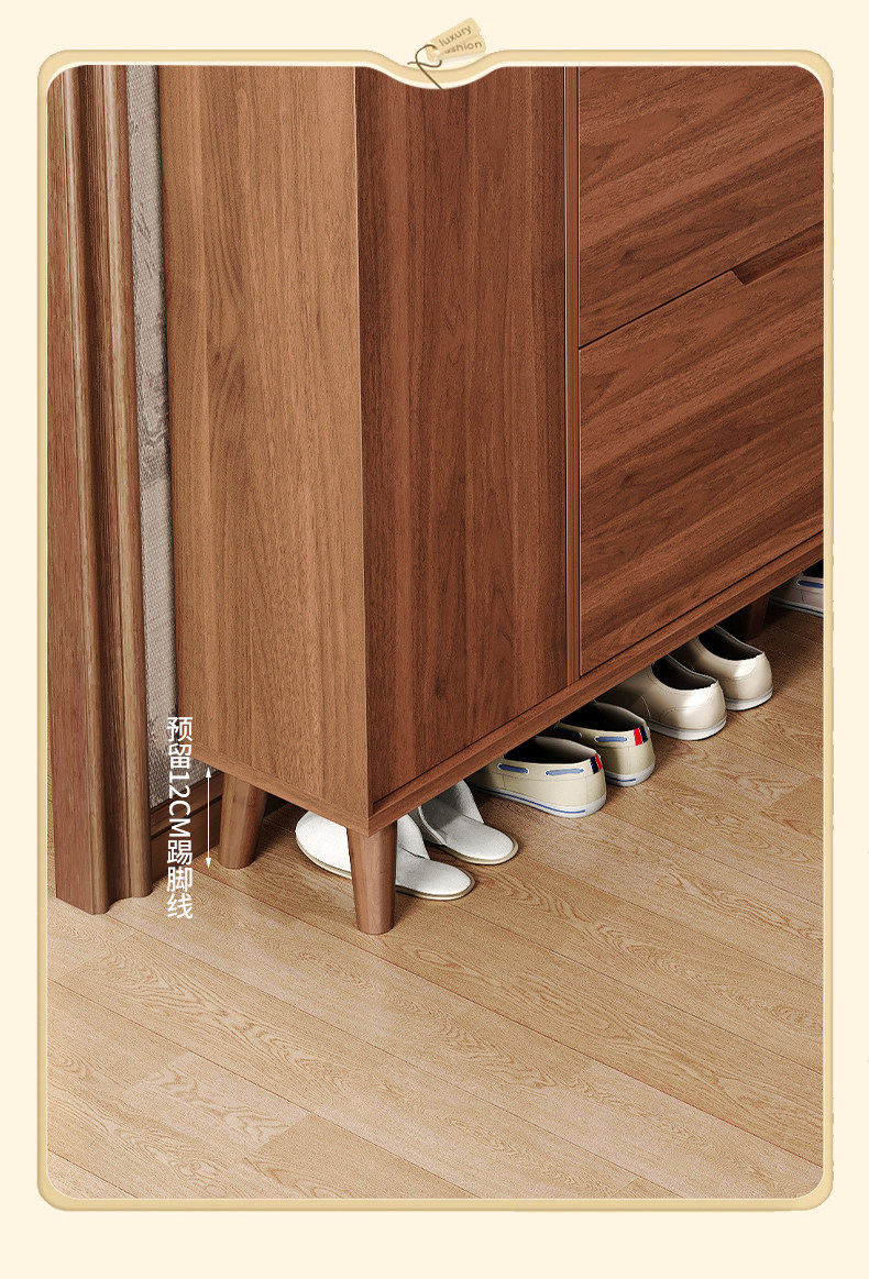 新しい中国風のダンプシューズキャビネット、家の玄関ドア、壁、廊下、無垢材の脚、一体型収納シューズラック