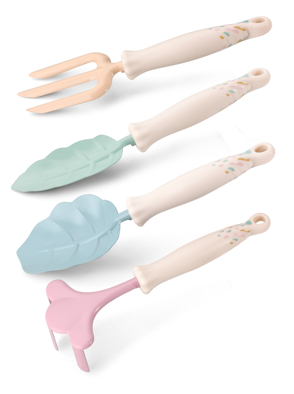 儿童花园种植工具叶子花瓣卡通挖泥铲子翻土耙种花三指叉手柄图案