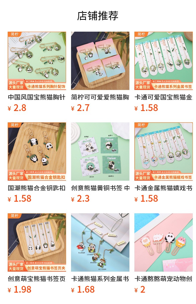 漫画パンダブックマークかわいい国宝金属ブックマーク学生中国風クリエイティブ中空ブックマーク義烏文具