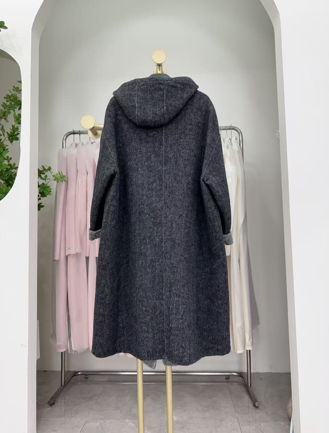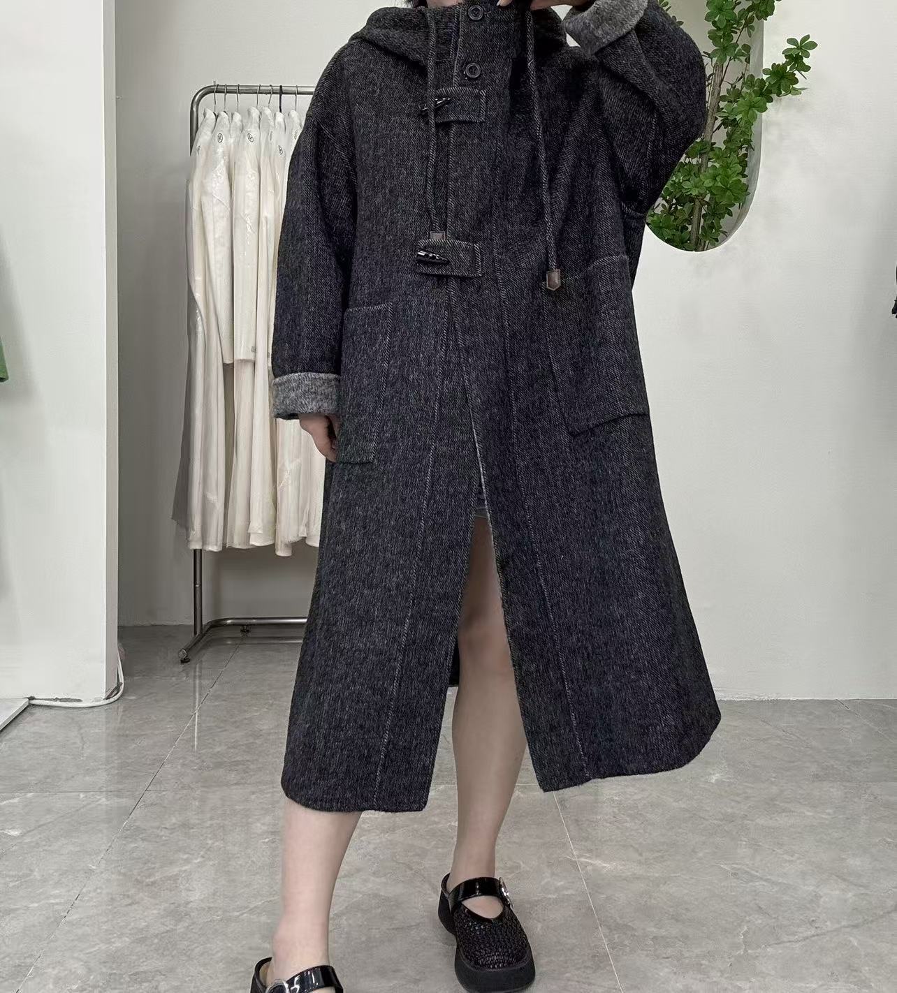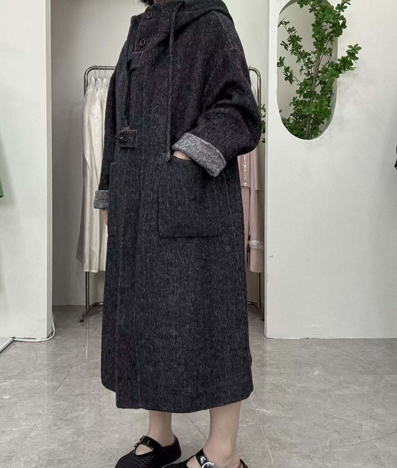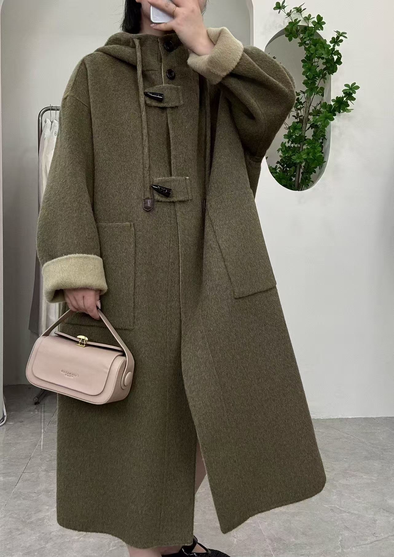 ソウルアカデミー2025秋冬韓国風フード付きホーンボタンワイドバージョンハイエンド増厚拡張両面ウールコート