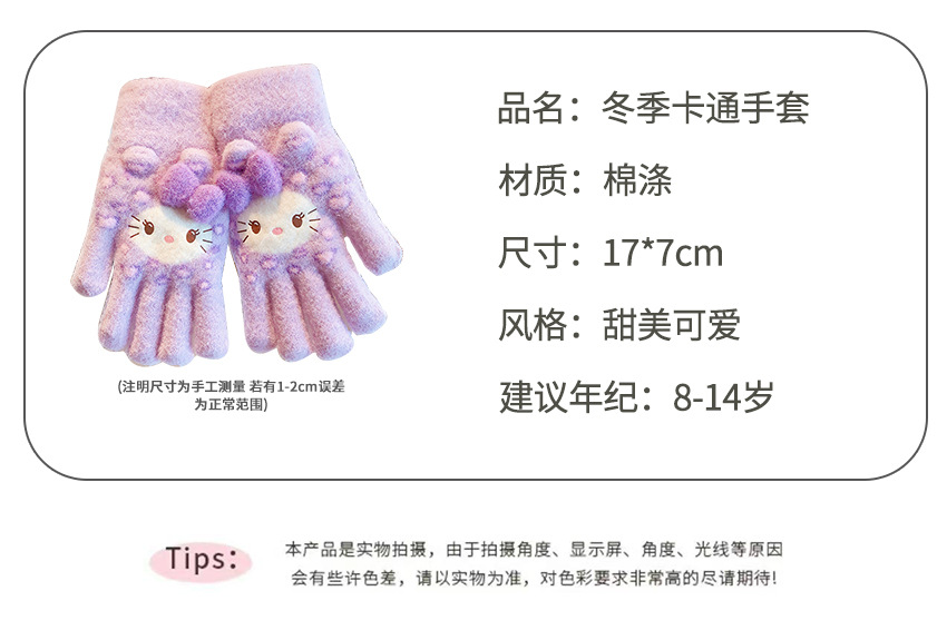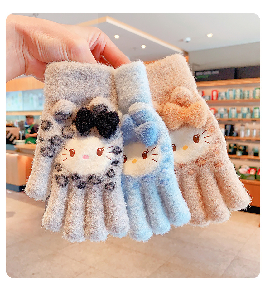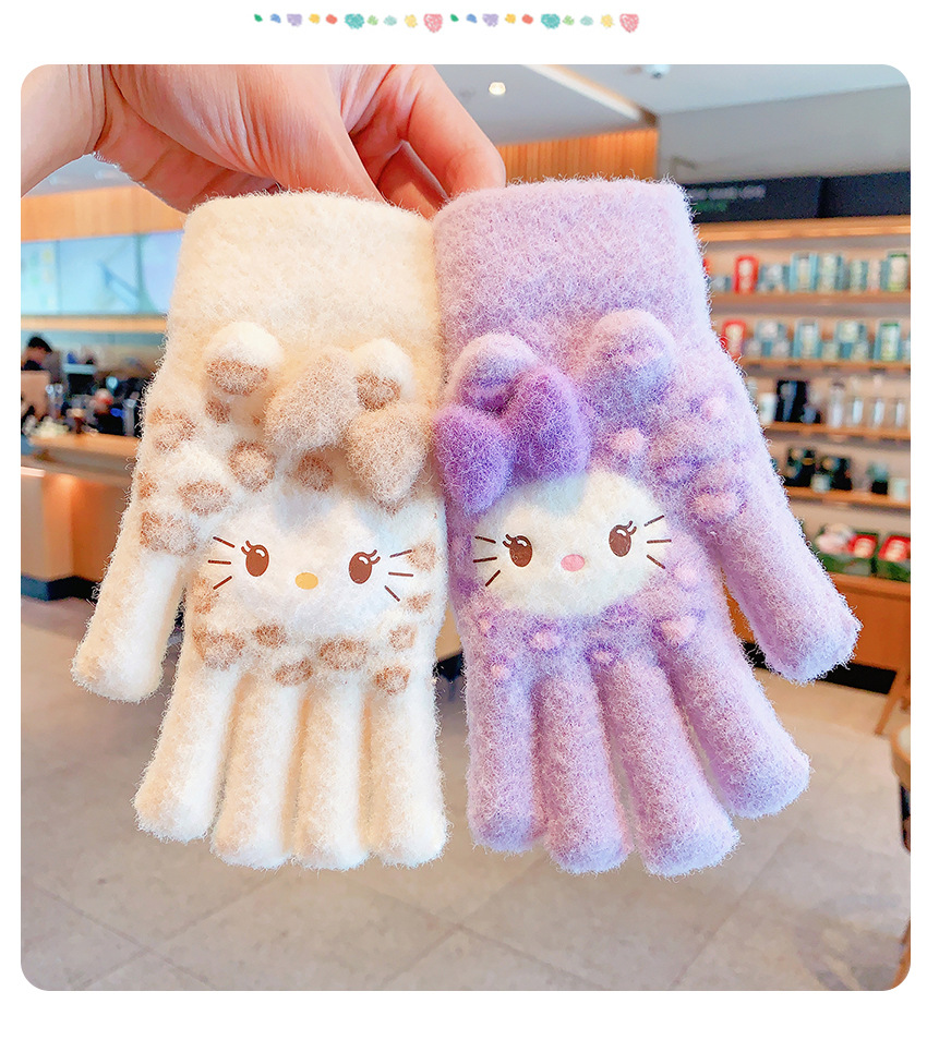 儿童五指手套女童冬天保暖防寒防冻kitty猫小孩学生加厚分指手套