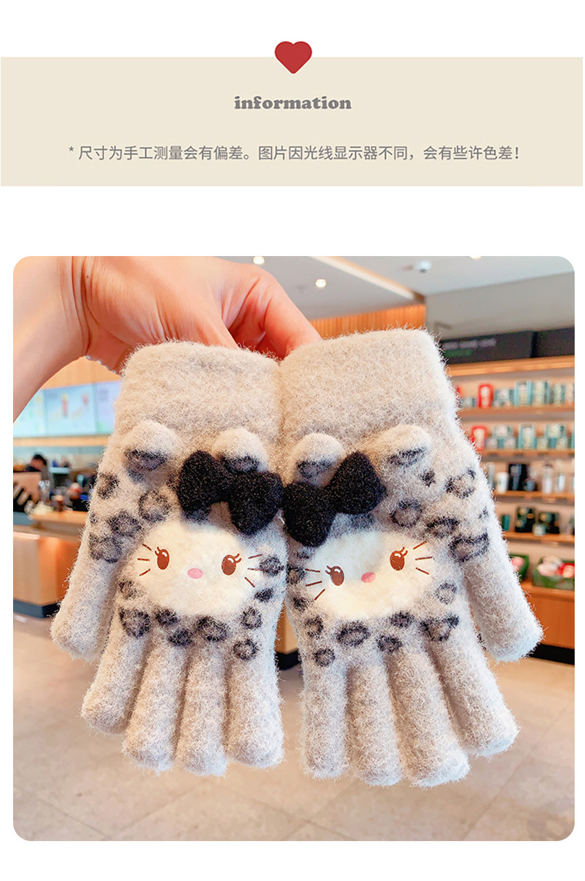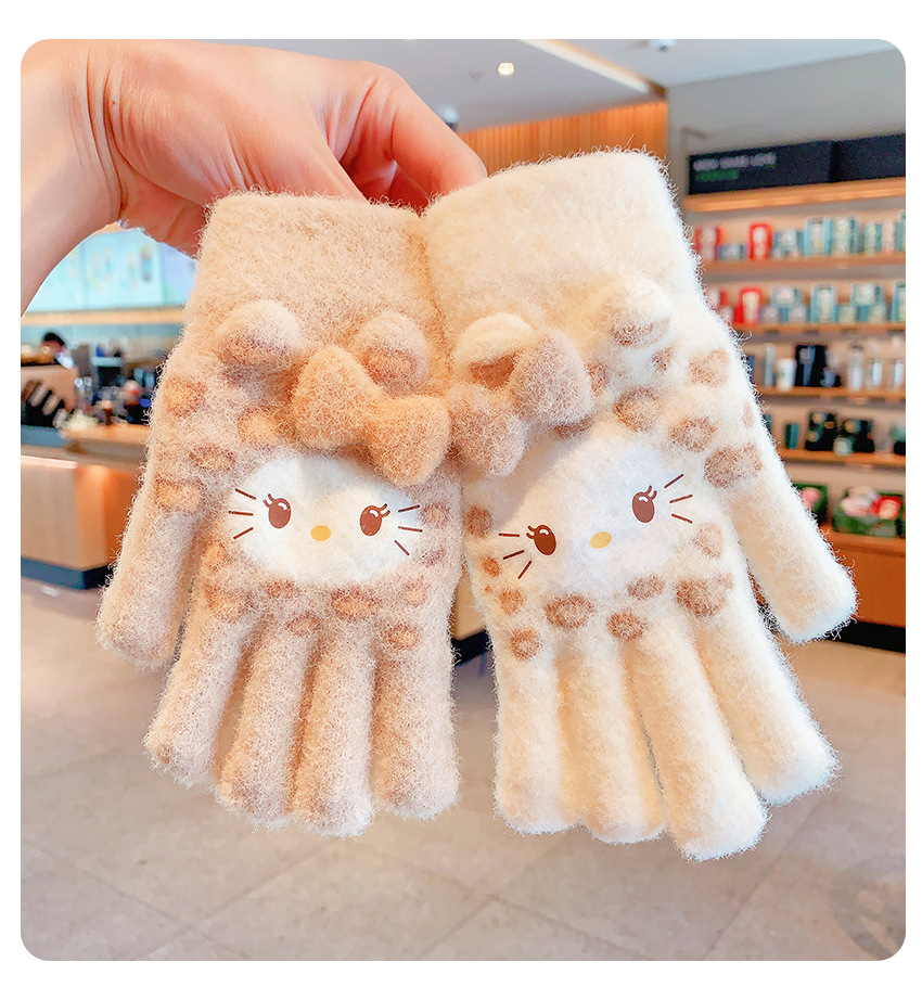 2025冬季中大童可爱男女学生卡通针织毛线翻盖两用保暖手套写字