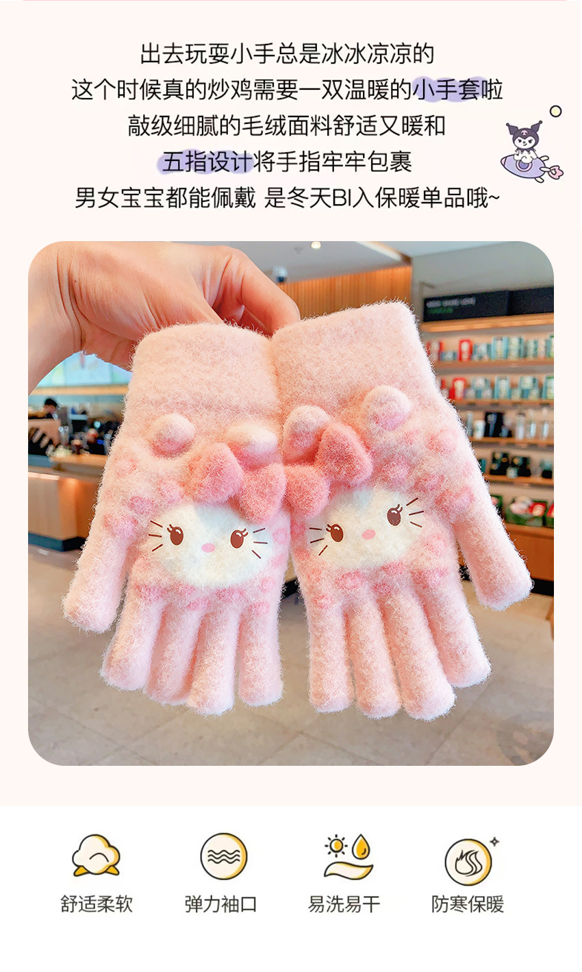 三丽鸥正版授权可爱卡通保暖手套男孩女童五指防寒新款库洛米手套