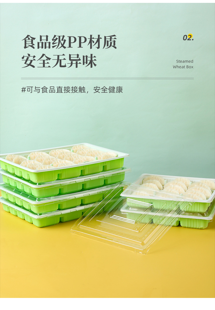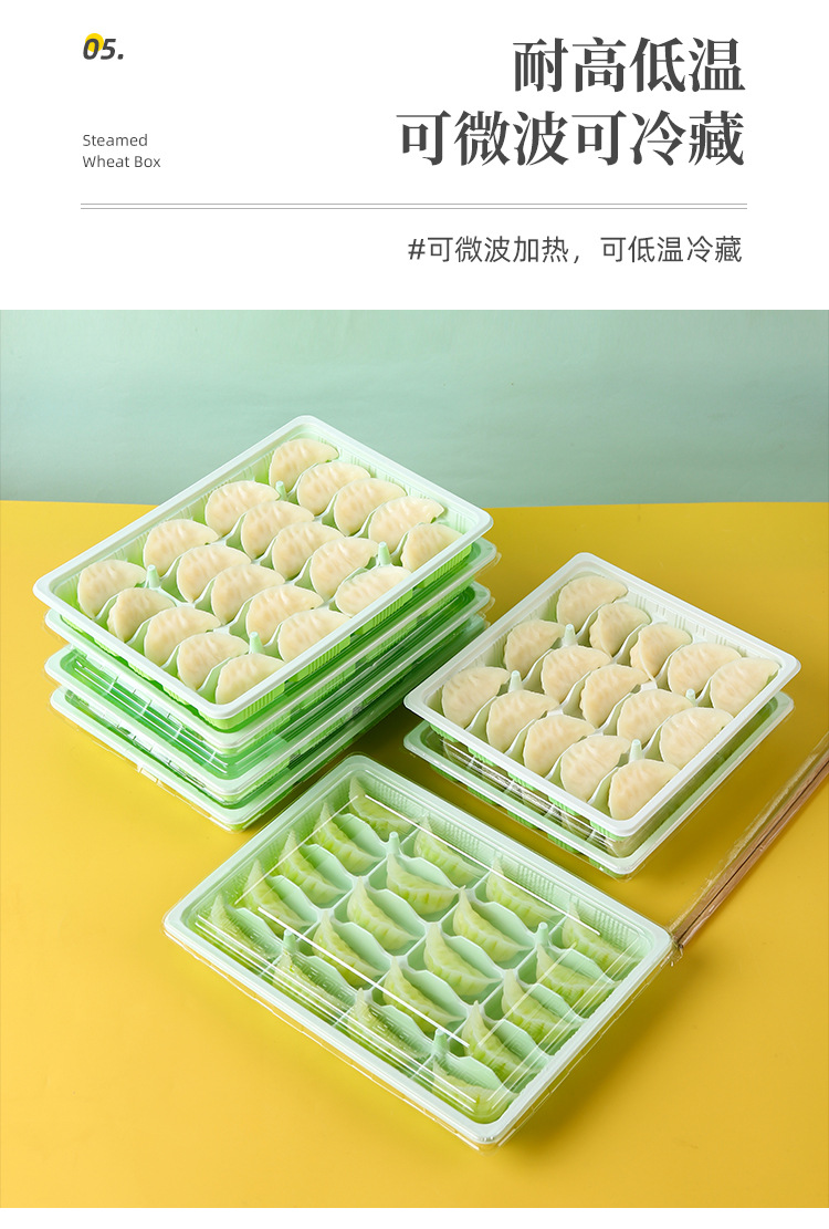 餃子の包装箱は使い捨てで、マイクロ波食品級の分格を厚くして、蓋を持って外に出して業務用冷凍弁当箱を包装することができます。