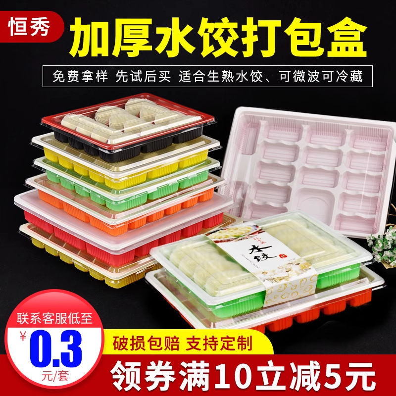 一次性饺子盒带盖包邮15 20格外卖餐盒打包速冻水饺盒子批发家用