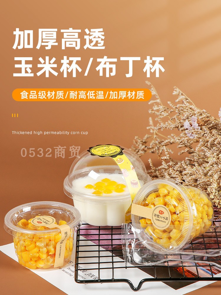 使い捨てコーンカップ双皮乳蓋付き厚いプラスチックカップ商用マイクロ波プリンヨーグルト包装ボウル
