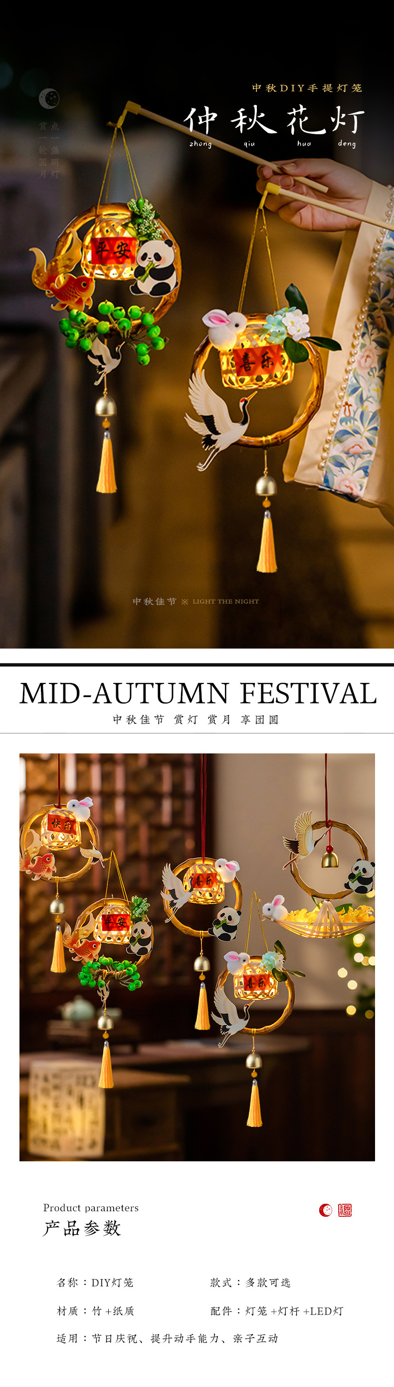 颜色 【飞鹤款】中秋花灯,【锦鲤款】中秋花灯,【锦鲤熊猫款】中秋花灯,【飞鹤熊猫款】中秋花灯,【飞鹤熊猫+小船款】中秋花灯