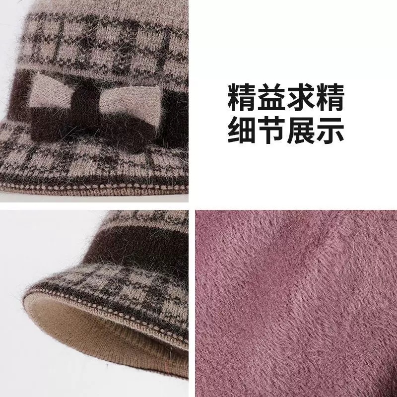 冬季中老年新款妈妈帽女兔毛加绒加厚针织大檐盆帽防风保暖毛线帽