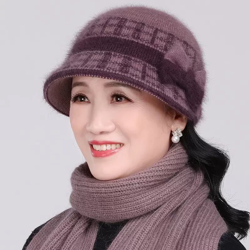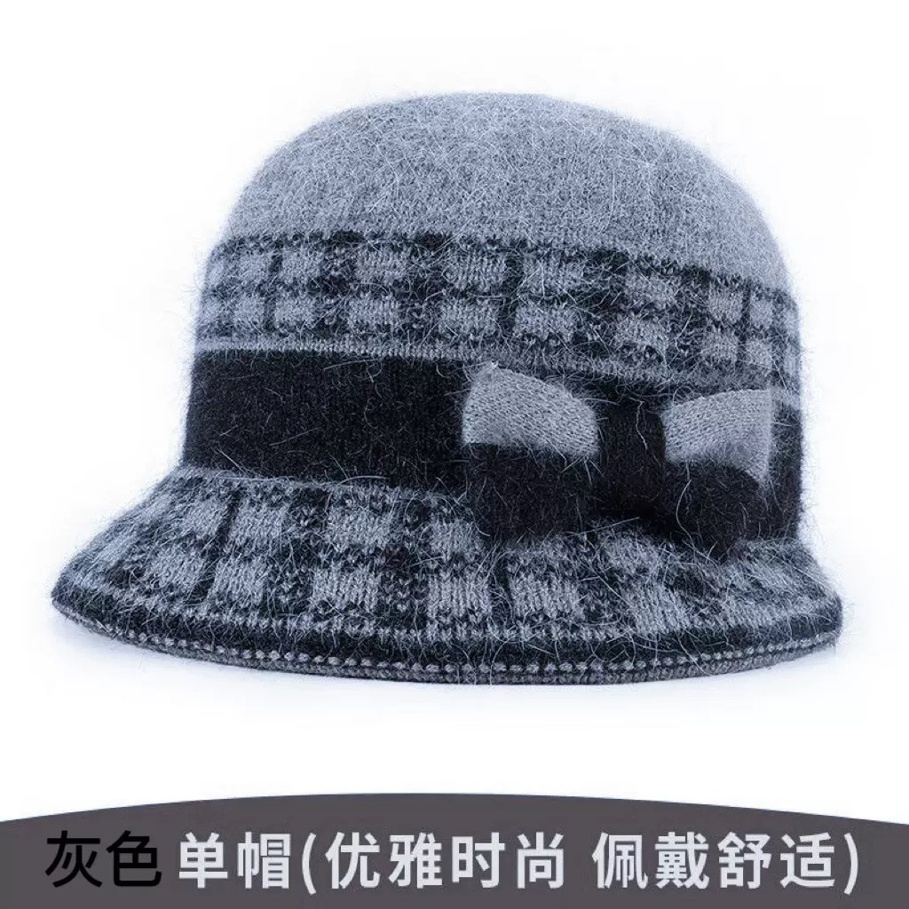 中老年人秋冬季兔毛妈妈毛线帽老太太老人帽子女冬天加绒保暖奶奶