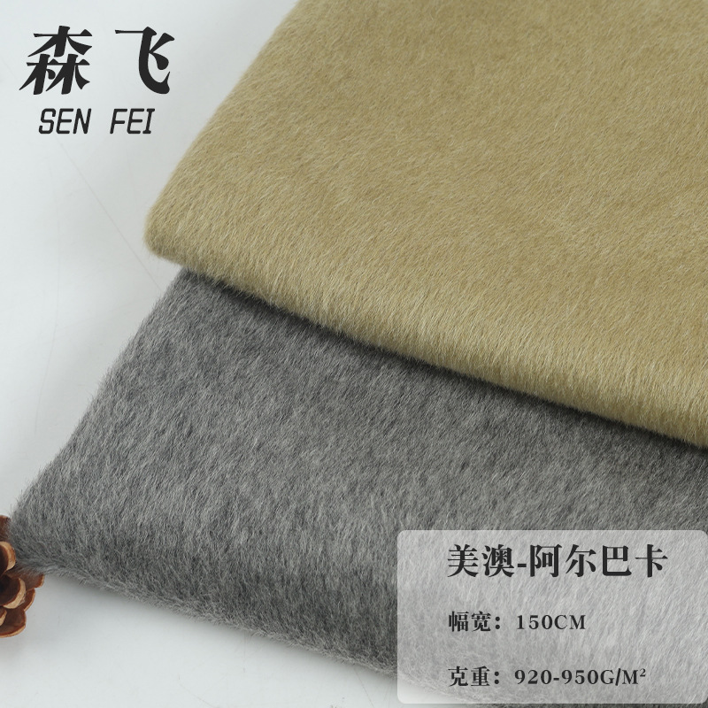 现货美澳阿尔巴卡羊毛面料布70毛双面羊绒秋冬大衣外套双色呢绒