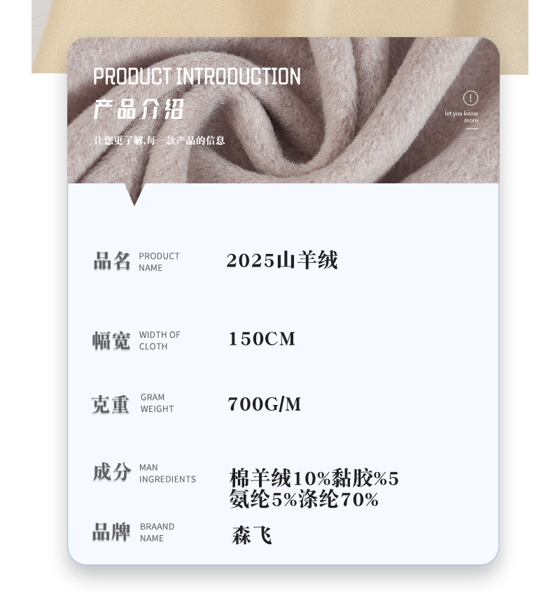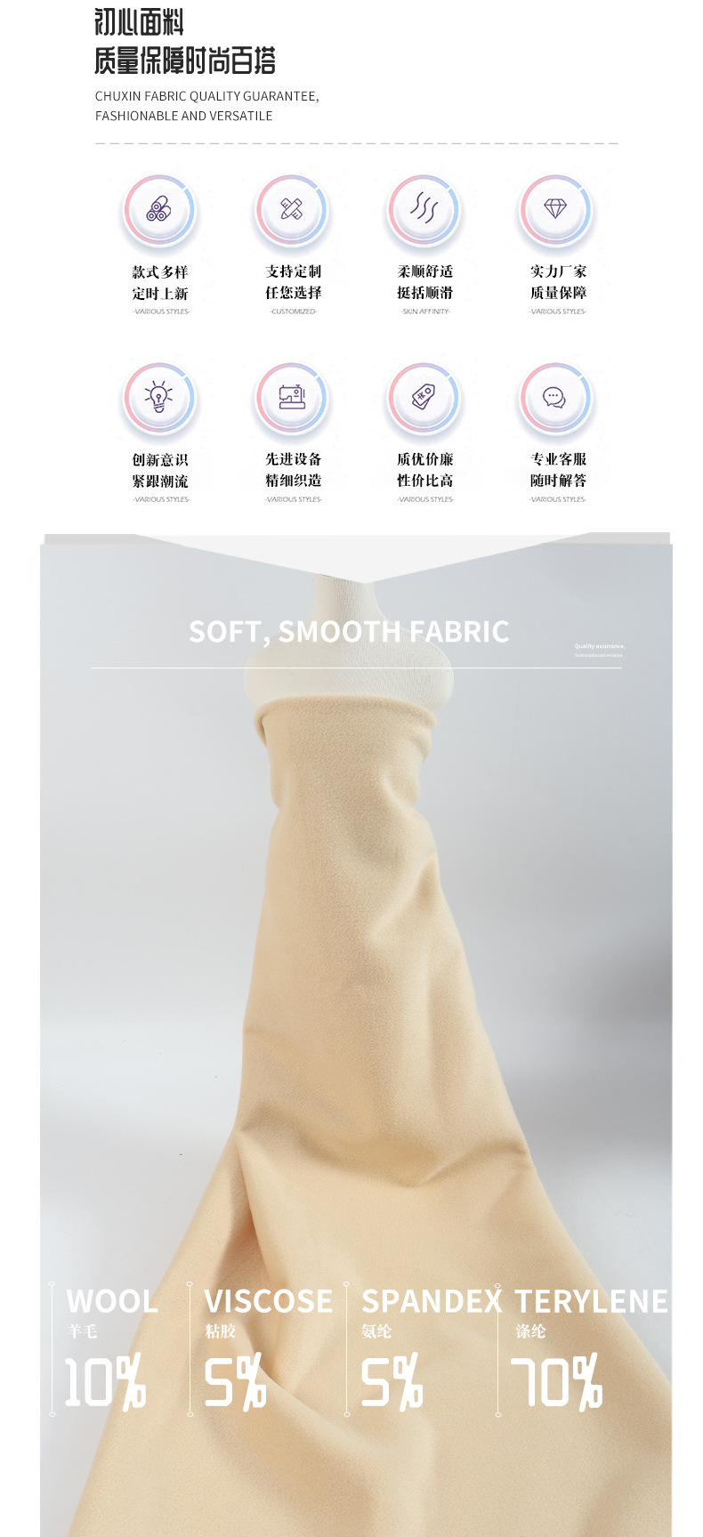 成分及含量 棉羊绒10%黏胶%5氨纶5%70涤纶