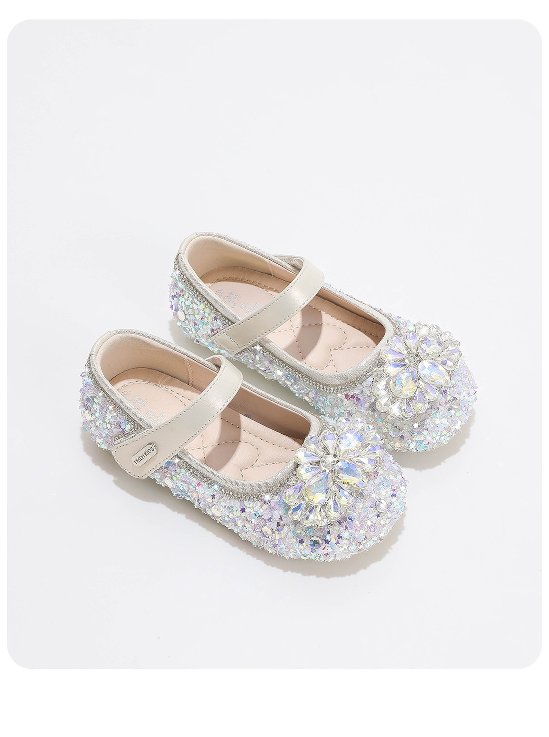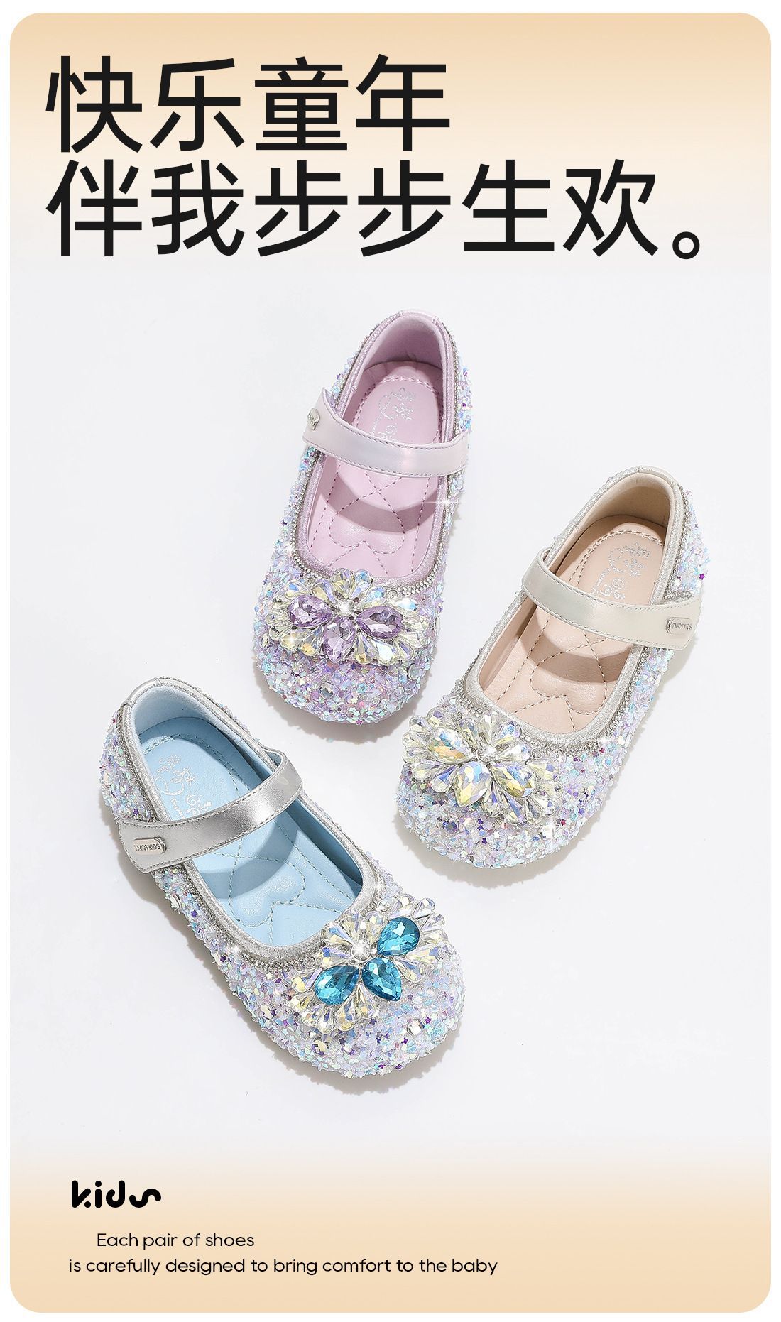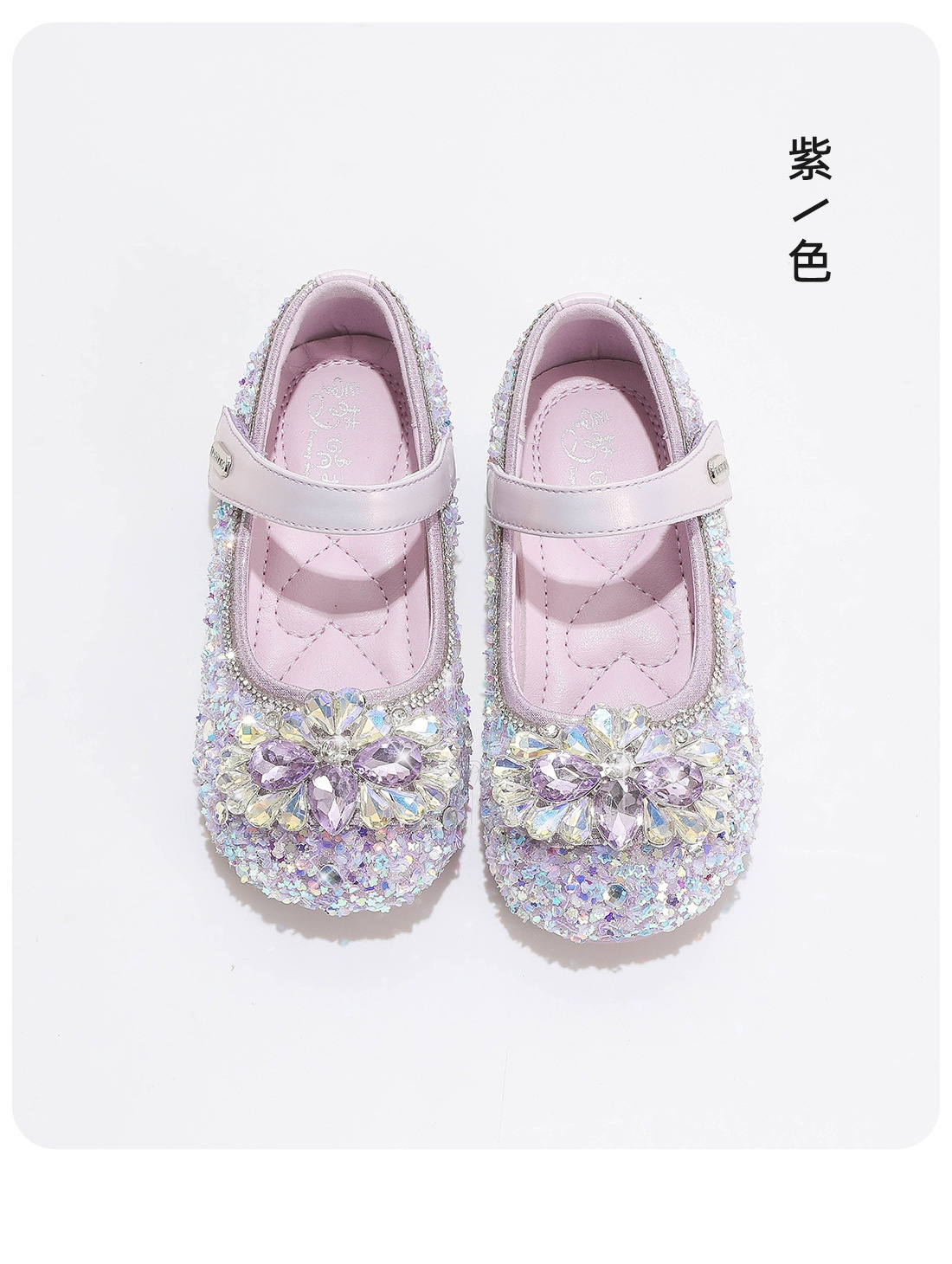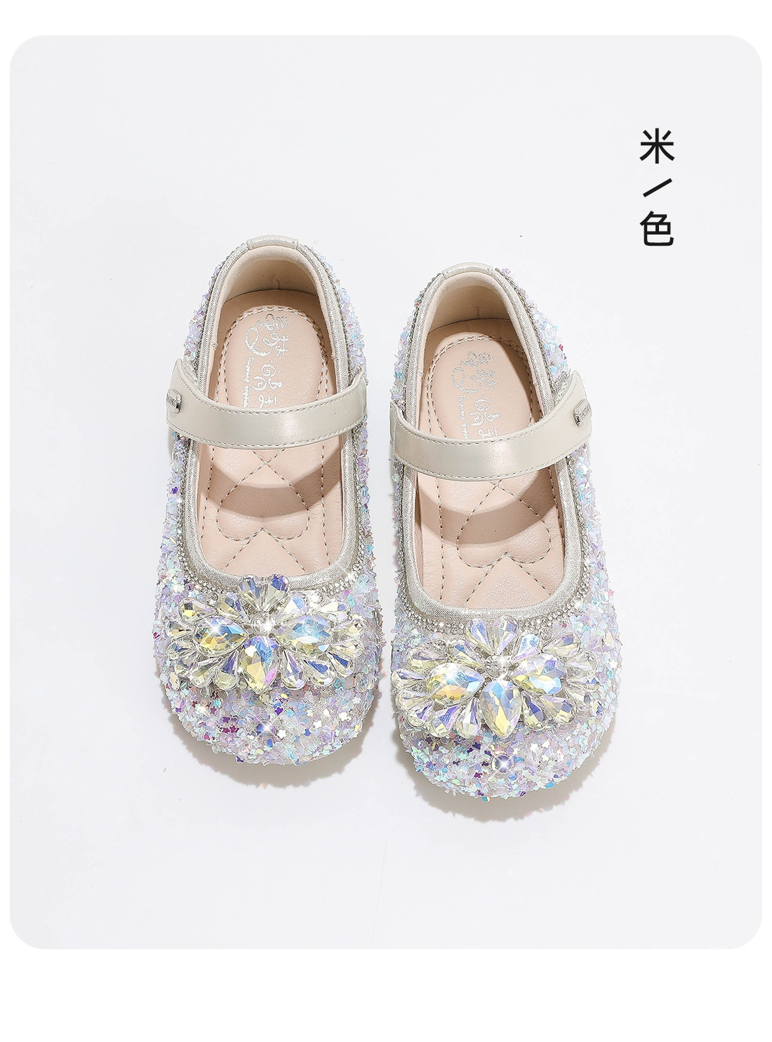 2025春秋女童公主鞋软底小皮鞋演出水晶鞋单鞋新款闪闪鞋儿童鞋子