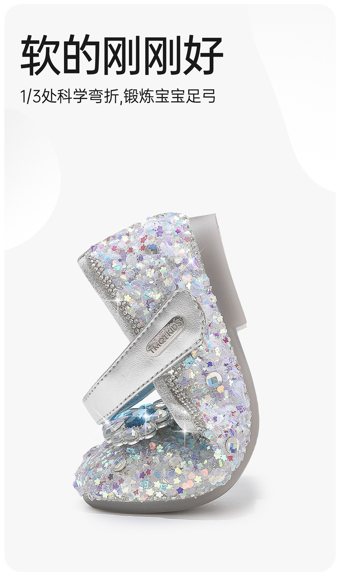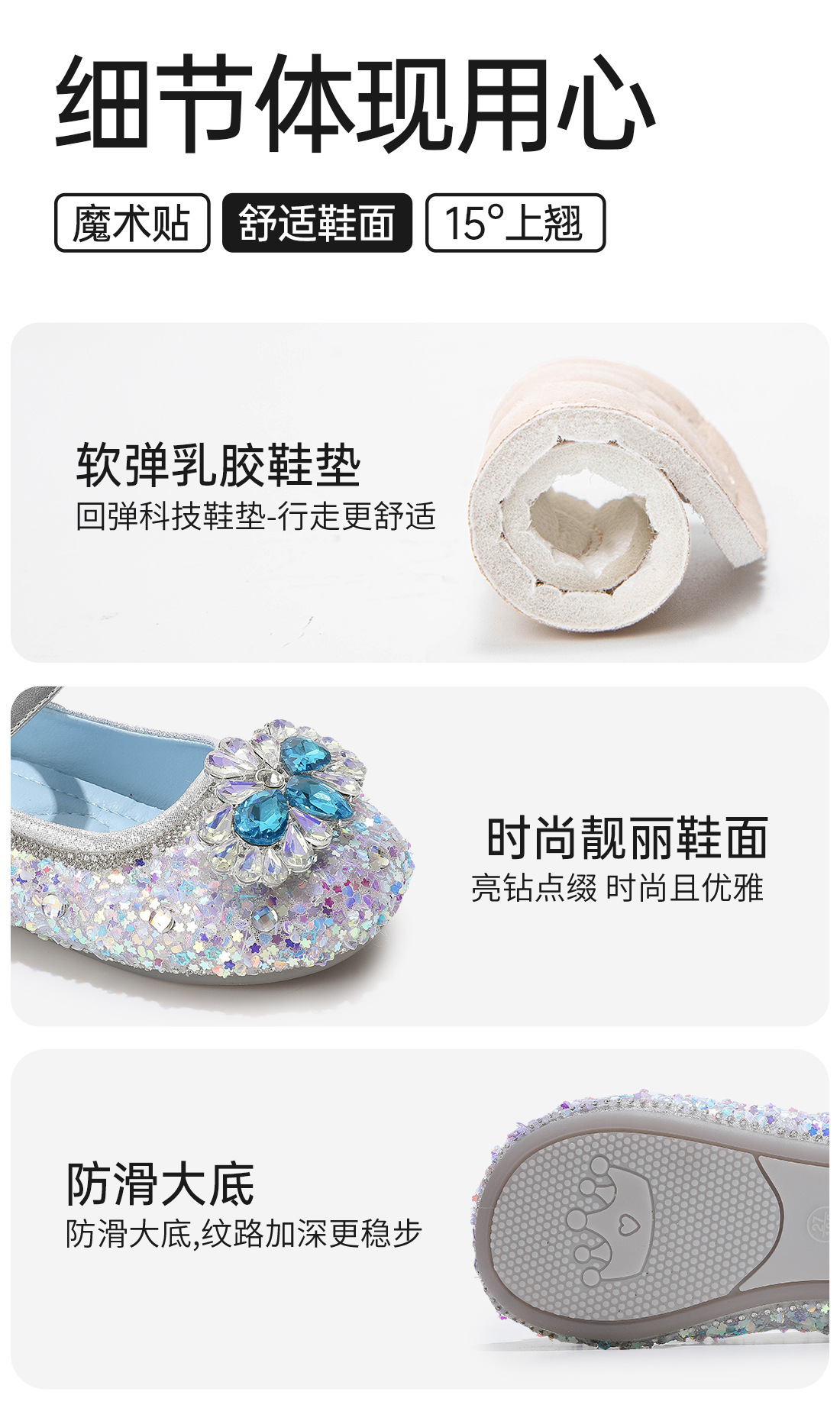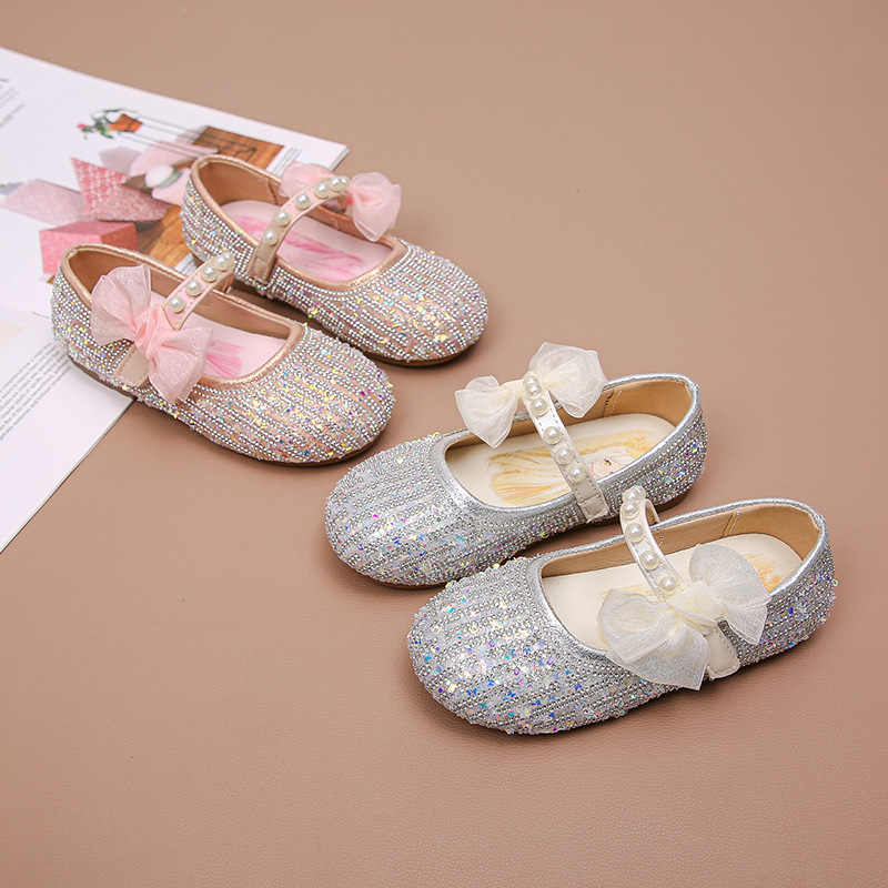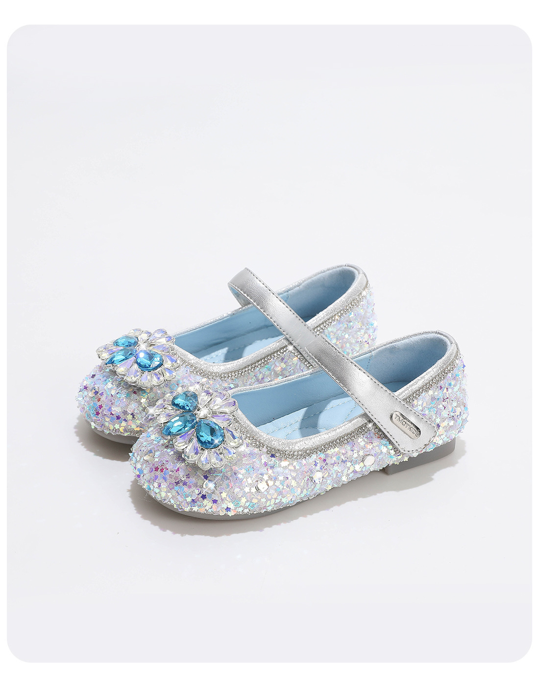2025春秋女童公主鞋软底小皮鞋演出水晶鞋单鞋新款闪闪鞋儿童鞋子