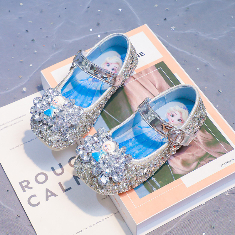 女の子の王女の靴2025春秋の新型のドリルのファッションの女性の赤ちゃんの水晶の靴の柔らかい底の艾莎の靴の中で小さい子供