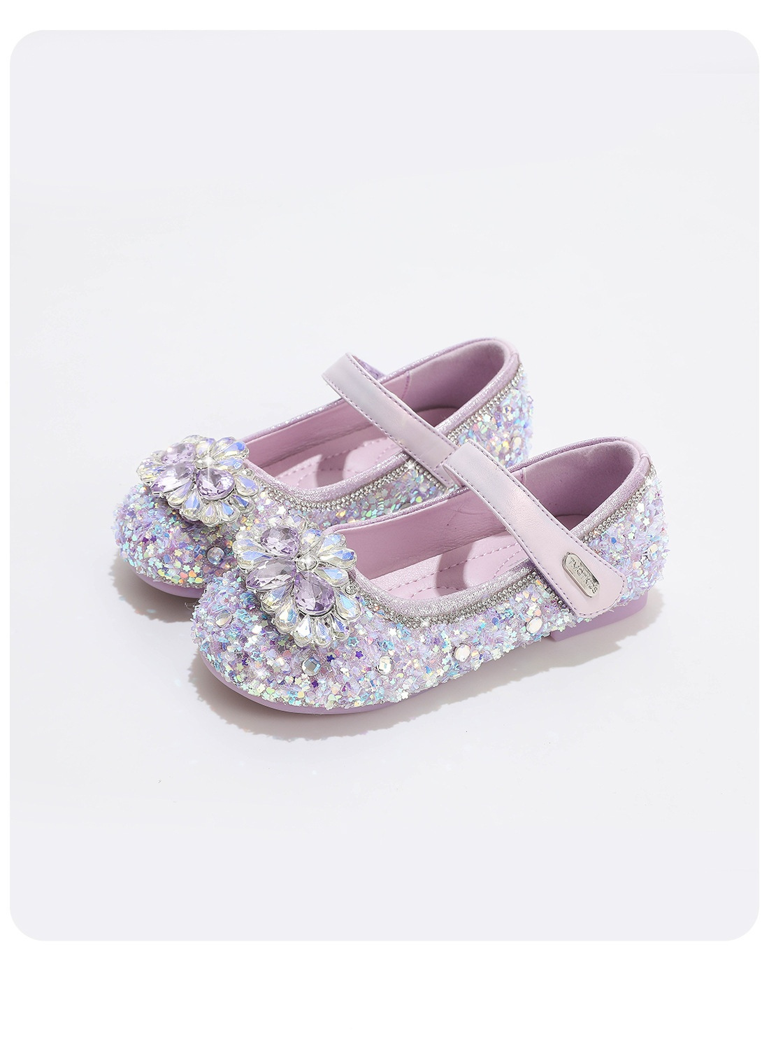 プリンセスクリスタルシューズ 2025 春と秋の新革靴スリッポンフラットシューズ子供靴ソフトソール少女靴