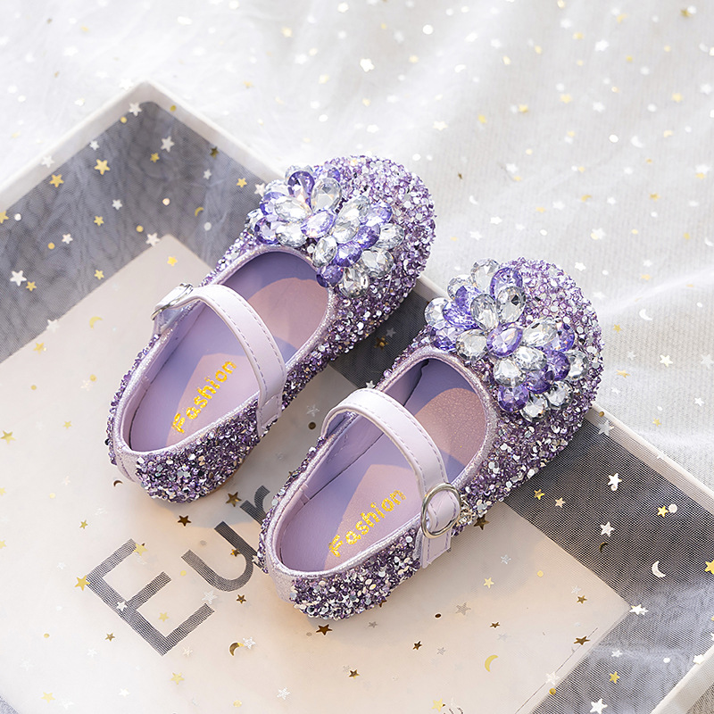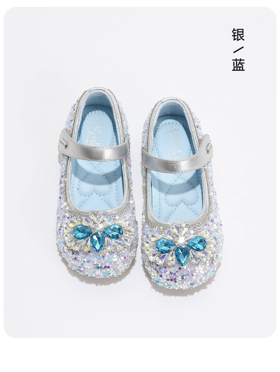 エルザクリスタルシューズ 2025 新しい子供女の子プリンセスシューズ春と秋の女の赤ちゃんソフトソール小さな革靴スパンコール靴