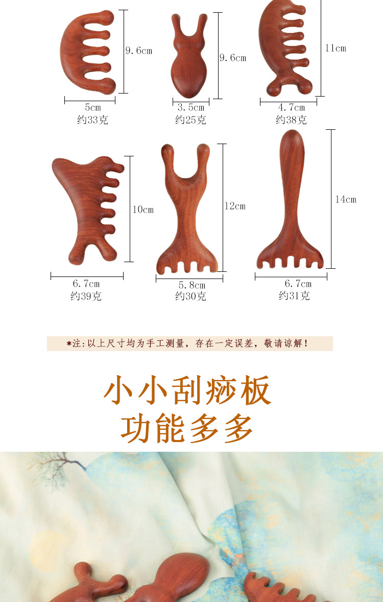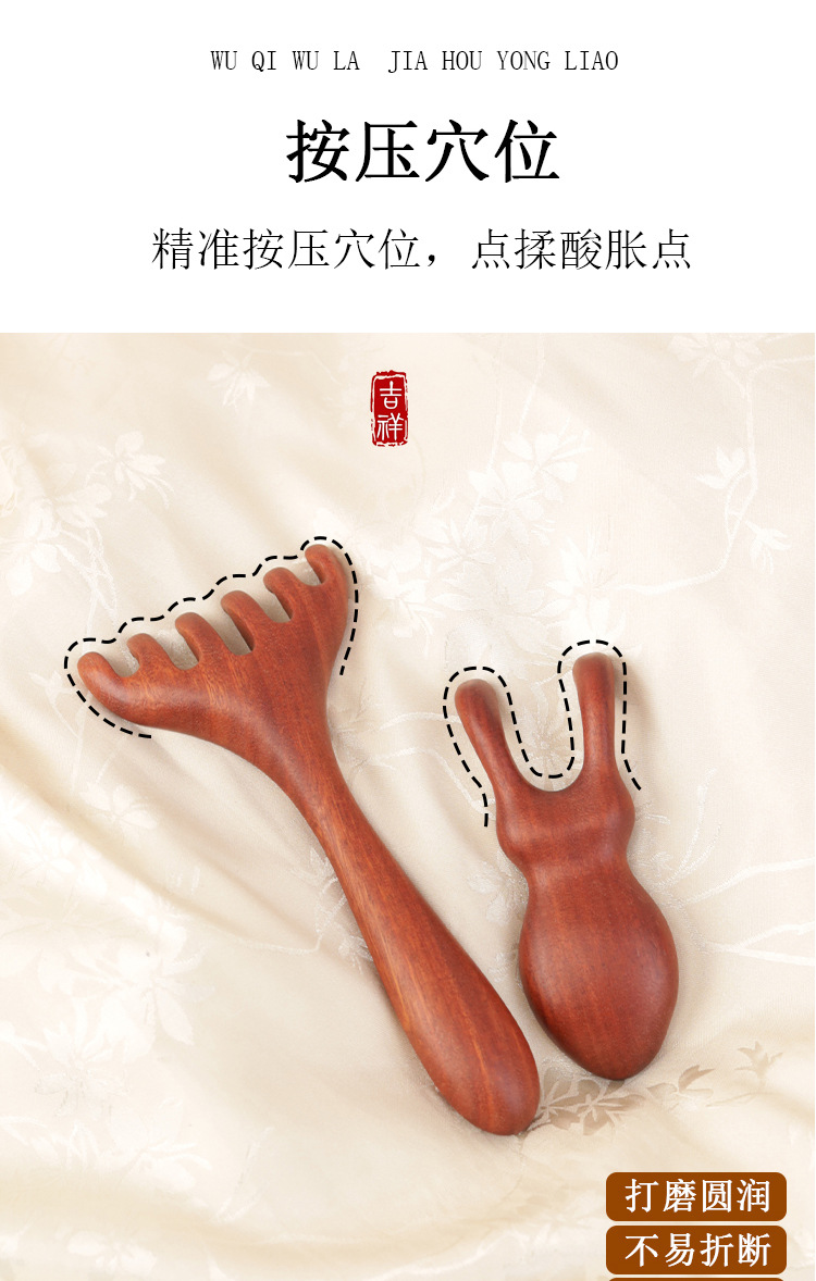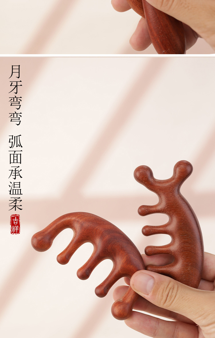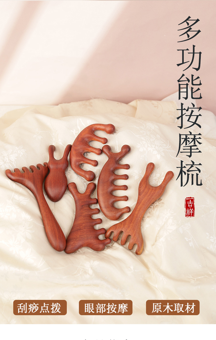 金白檀櫛、銅歯マッサージ櫛、頭経絡櫛、無垢材広歯櫛、ツボマッサージとスクレーピングツール
