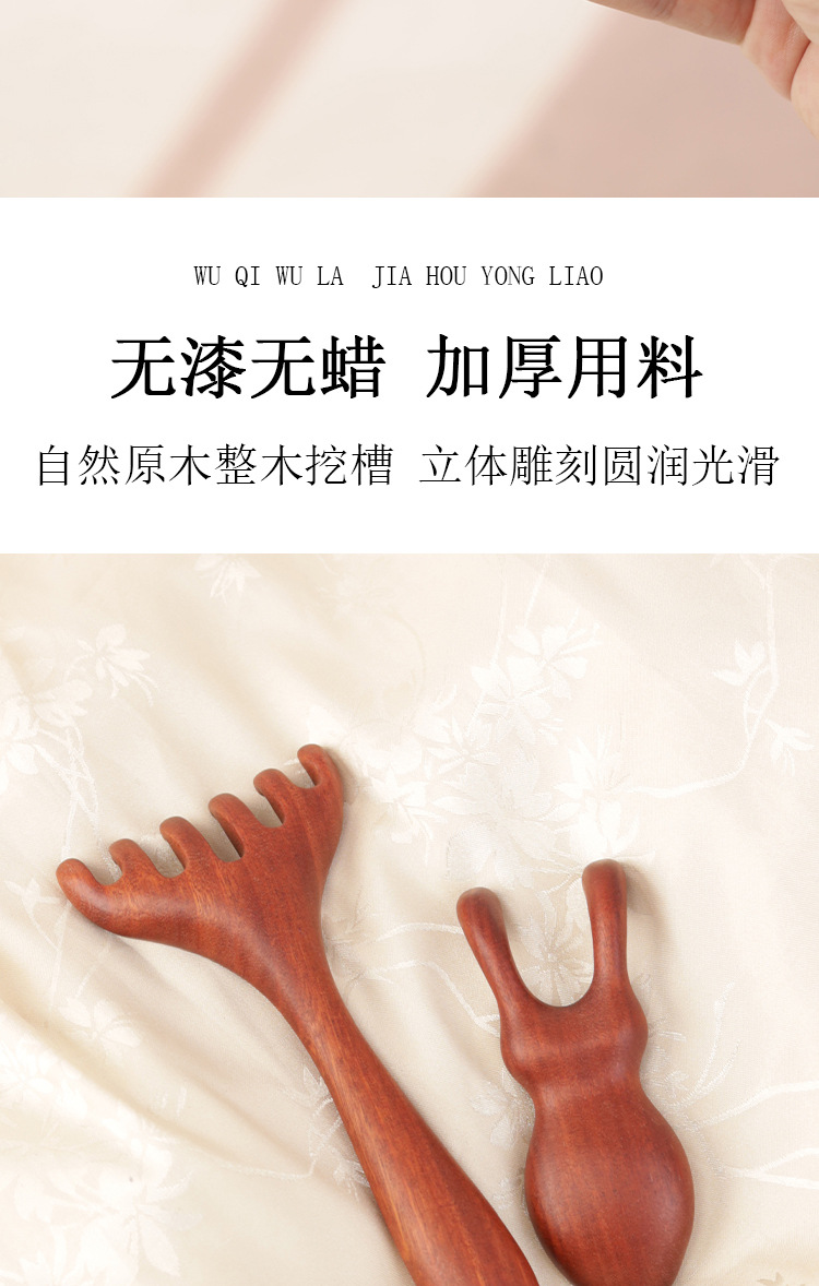 紫檀五爪頭皮マッサージコーム、鹿角かき、頭皮経絡コーム、刮痧棒、携帯用頭皮ケア棒