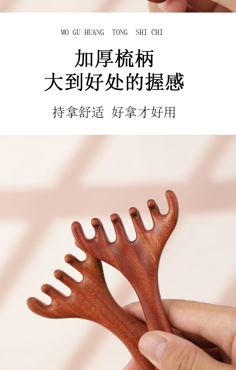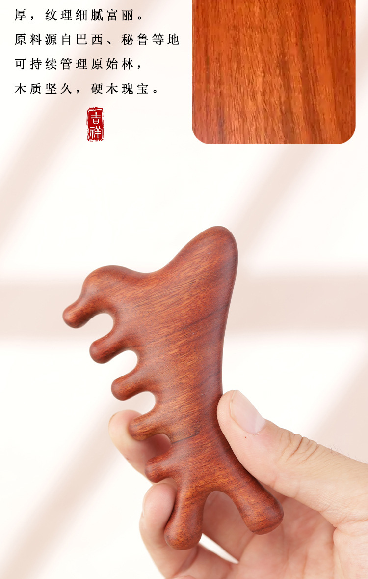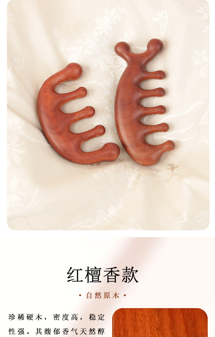 紫檀マッサージ櫛逸品緑檀木櫛檀香木頭部経絡櫛五指丸頭櫛頭治療櫛実木