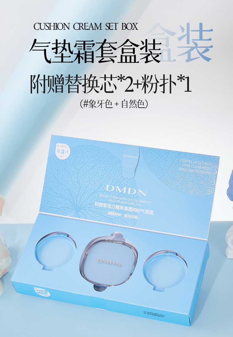 dmdn积雪草控油持妆气垫轻薄水润不卡粉保湿买一送四气垫bb霜套盒