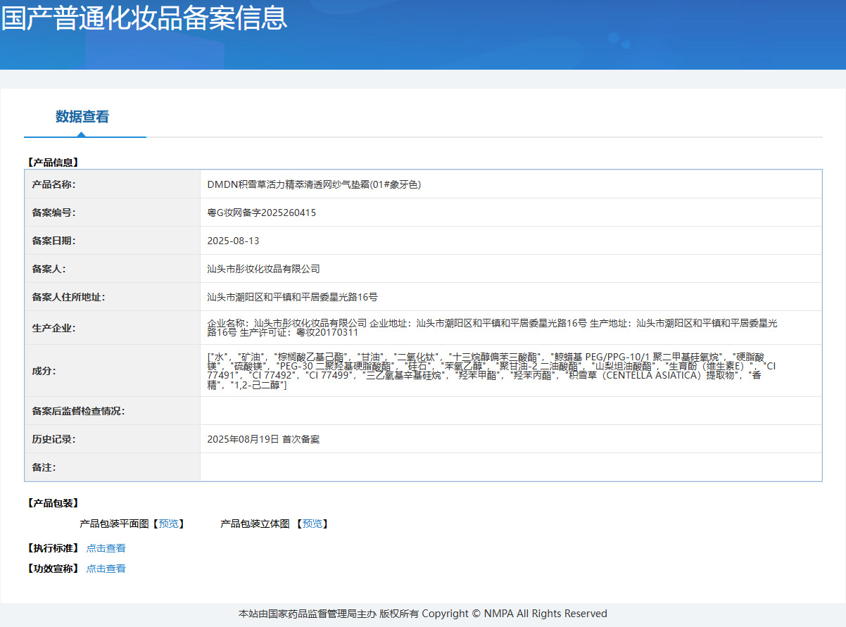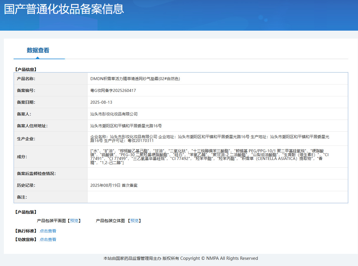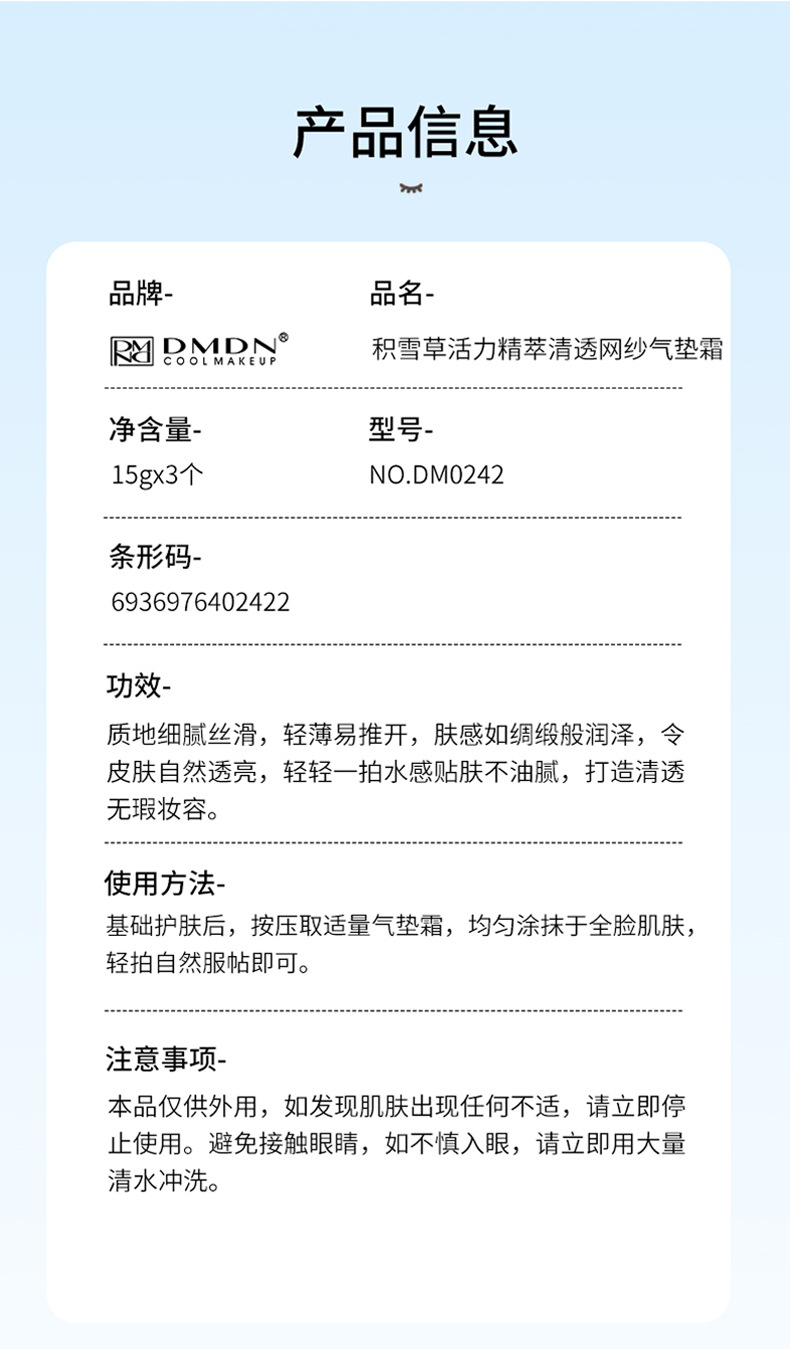 产品名称 积雪草活力精萃清透网纱气垫霜