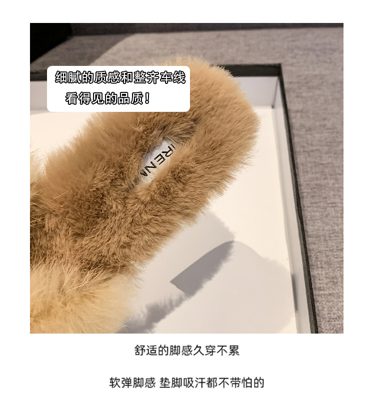 法式尖头毛毛拖鞋女外穿2025新款秋冬季晚晚风加绒粗跟包头棉拖鞋