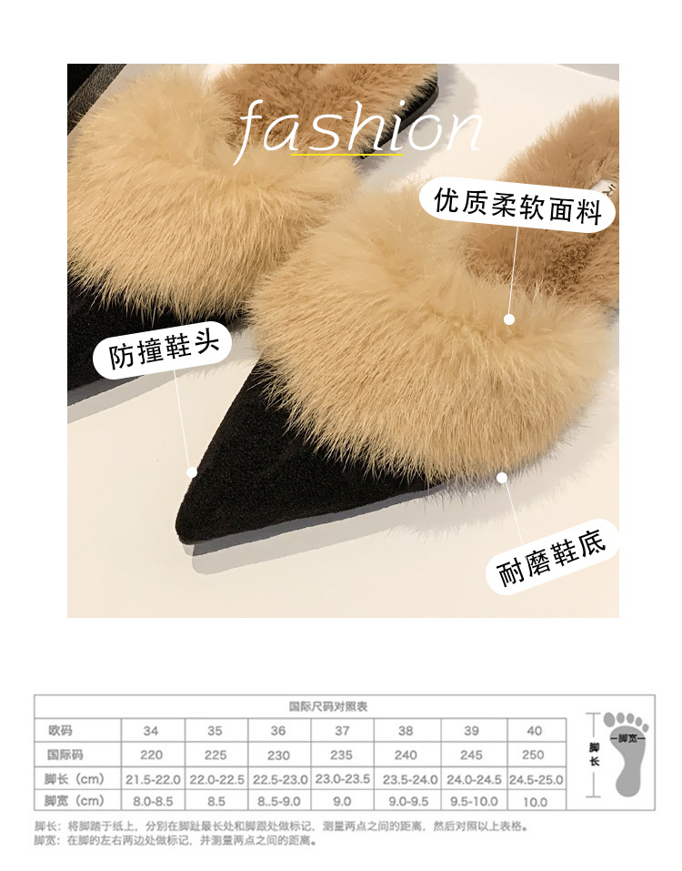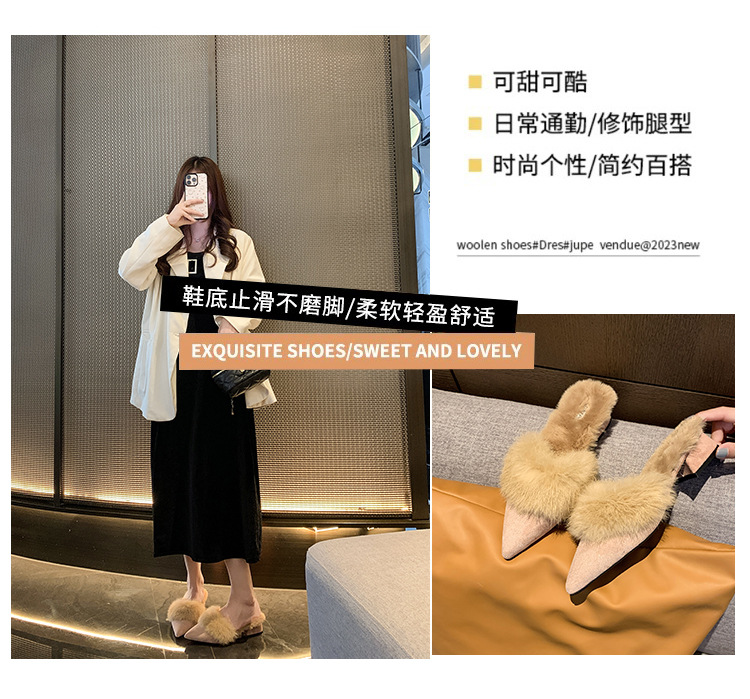 秋冬2025新款尖头毛毛保暖细跟高跟半拖鞋女包头穆勒鞋拖鞋