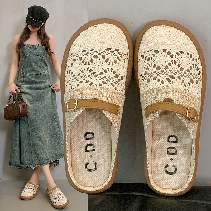 スカートスリッポン豚レトロ包頭ハーフスリッパ婦人靴ミュラー春夏森系イブニングシューズ2025ノーズマッチング
