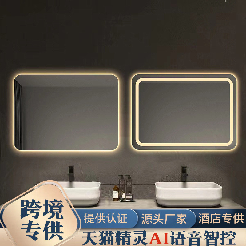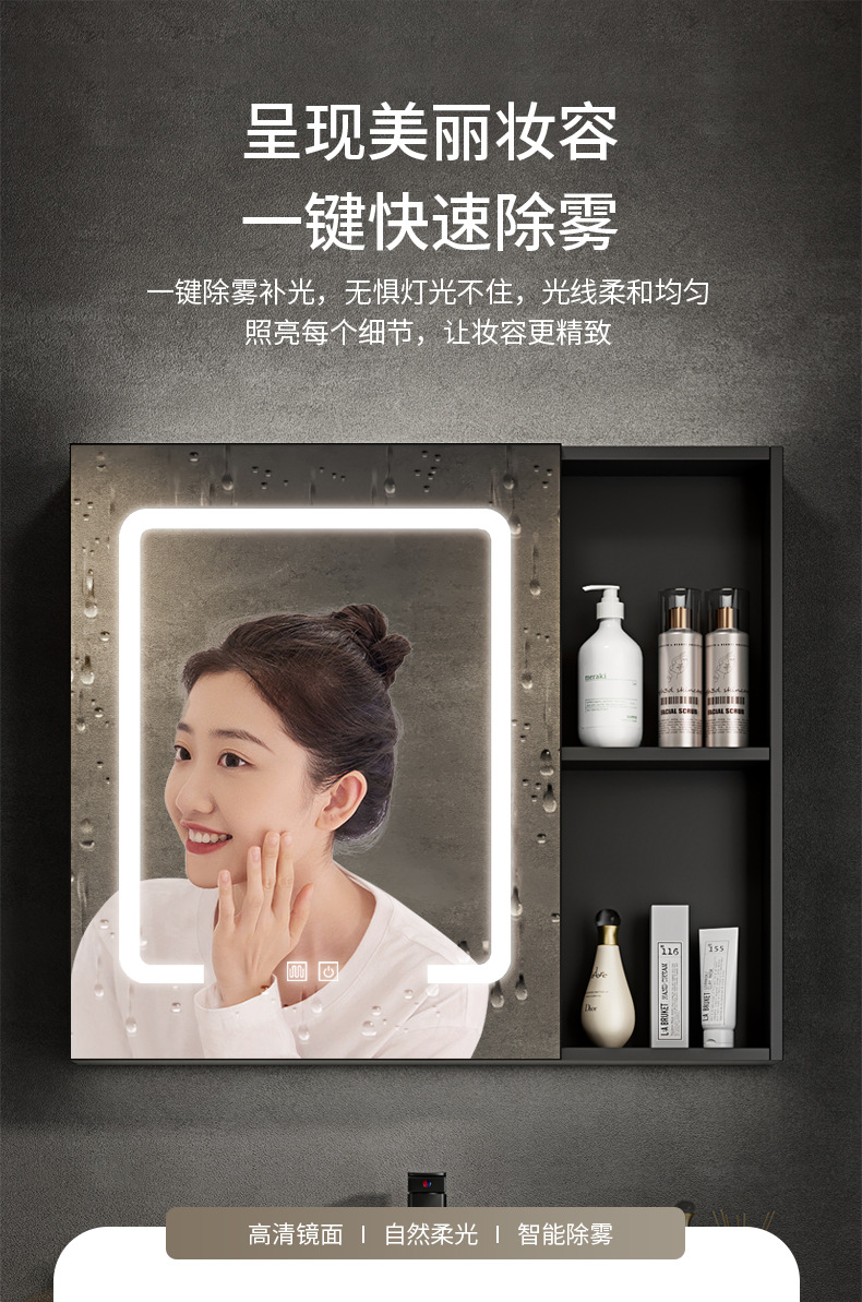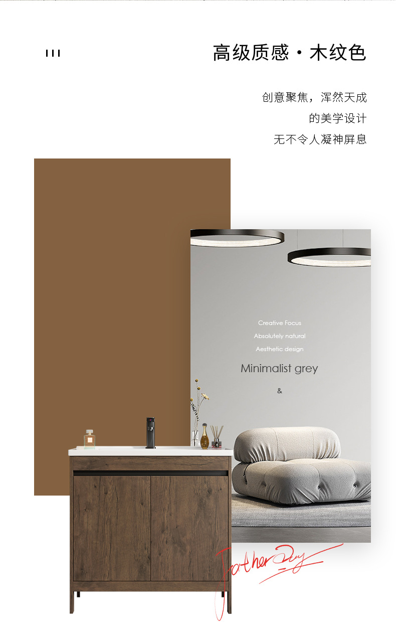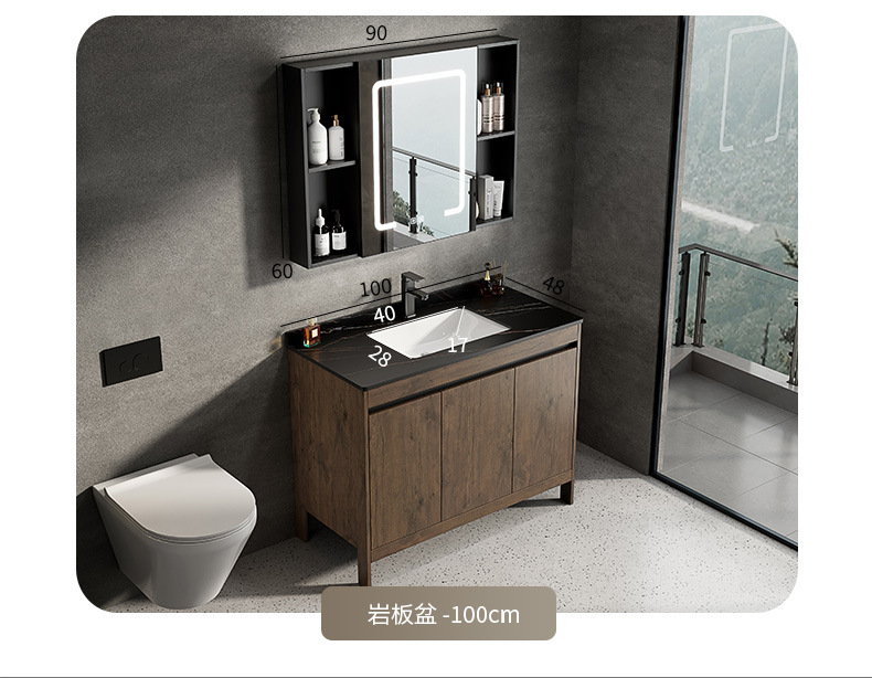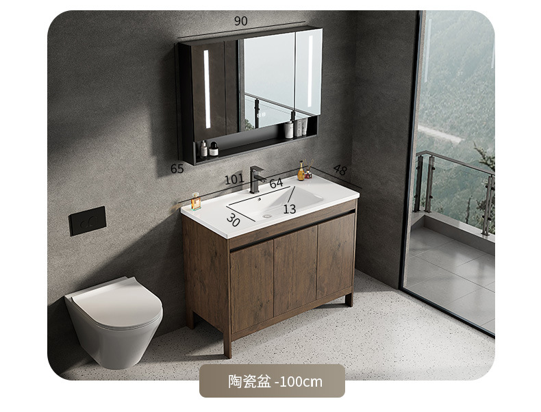 轻奢胡桃色柜体+陶瓷一体盆+智能镜柜