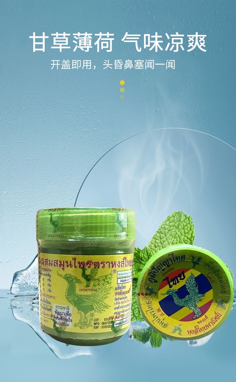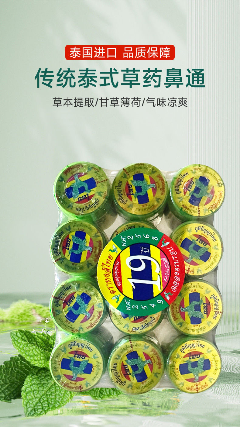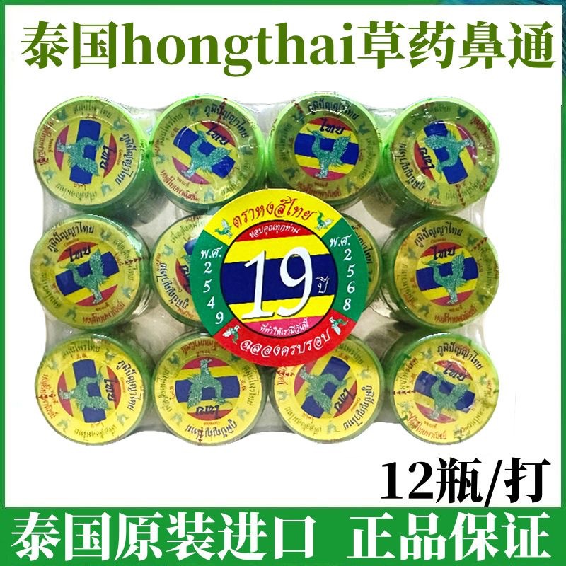 12瓶装泰国原装HongThai鼻通甘草本薄荷味提神醒脑鼻塞抗疲劳BKPP