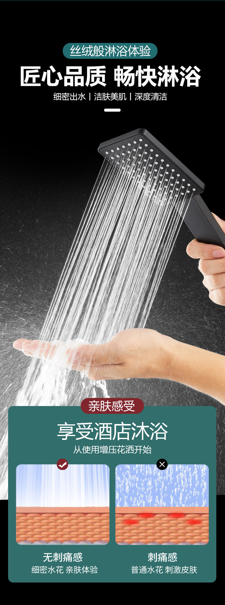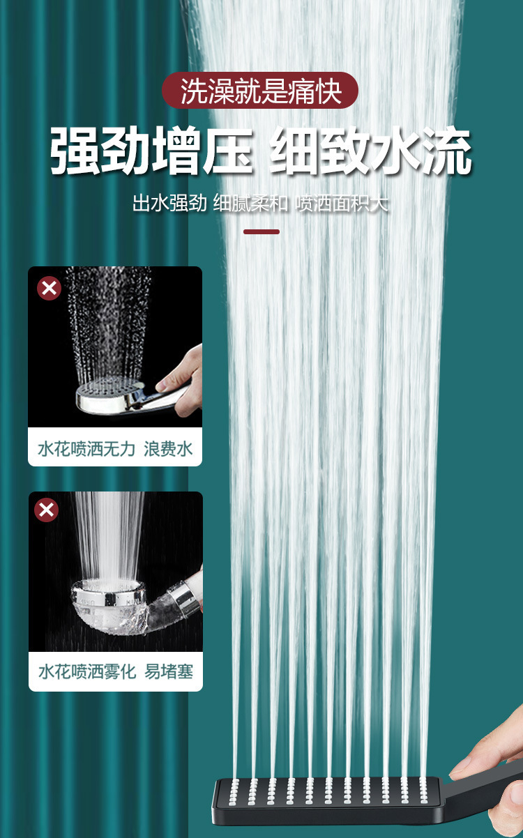 方形增压花洒喷头水龙头浴室淋雨淋浴洗澡热水器手持式加压莲蓬头