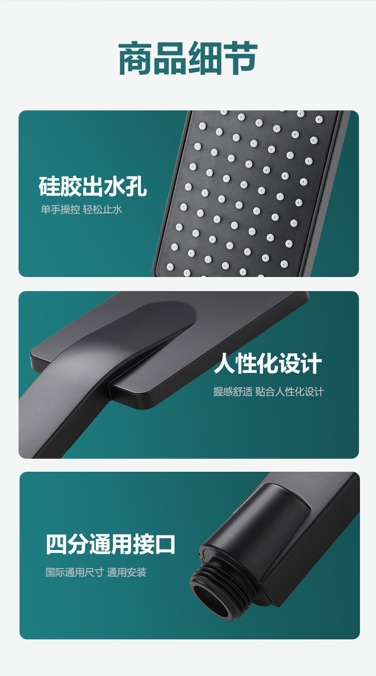 规格 方形单功能花洒【银色】,方形单功能花洒【黑色】,方形单功能花洒【枪灰色】,1.5米银色不锈钢管,2米银色不锈钢管,1.5米黑色不锈钢管,2米黑色不锈钢管,1.5米枪灰色不锈钢管,2米枪灰色不锈钢管,银色免打孔底座,黑色免打孔底座,枪灰色免打孔底座