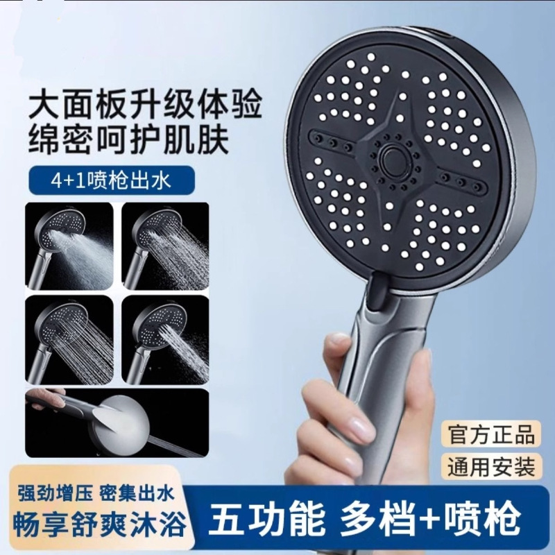 新款跨境大面板增压花洒五档调节喷枪淋浴喷头家用洗澡手持莲蓬头