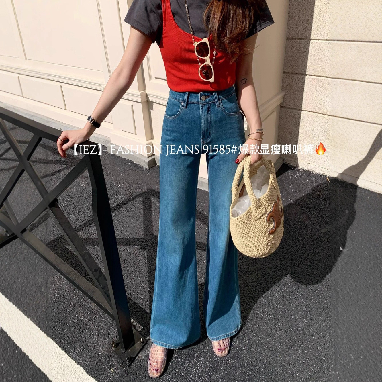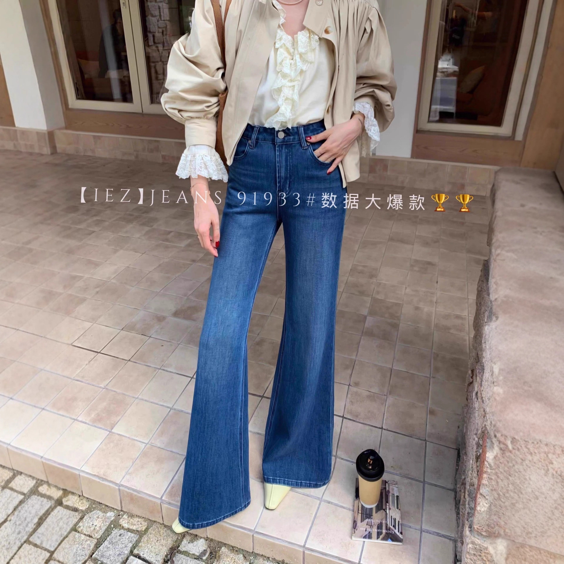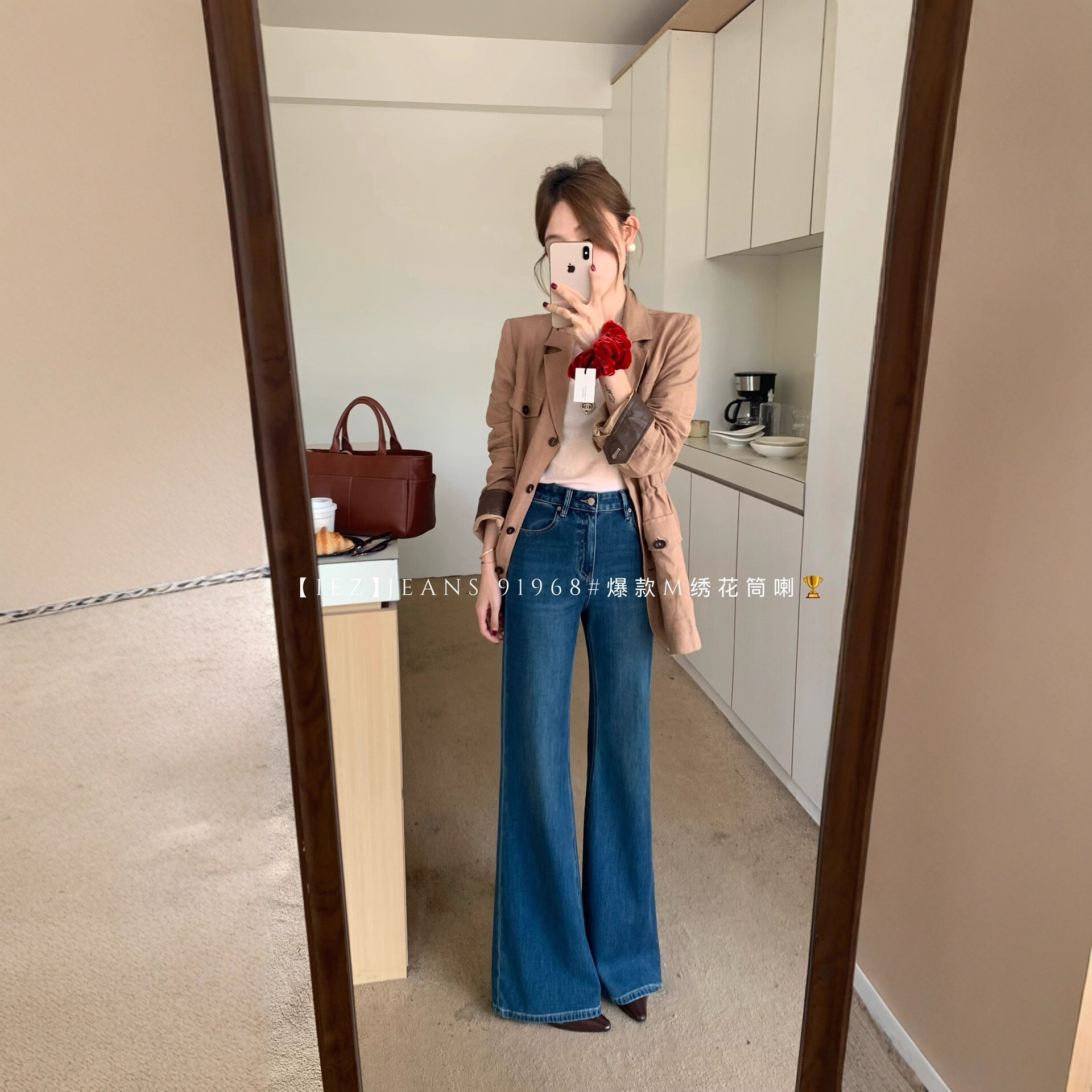 2025年新款IEZ牛仔裤91968高级四面弹软糯不贴腿刺绣直筒喇叭裤女